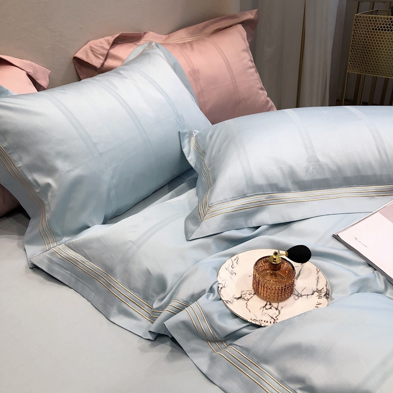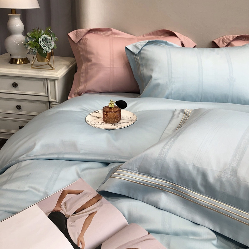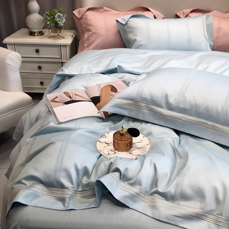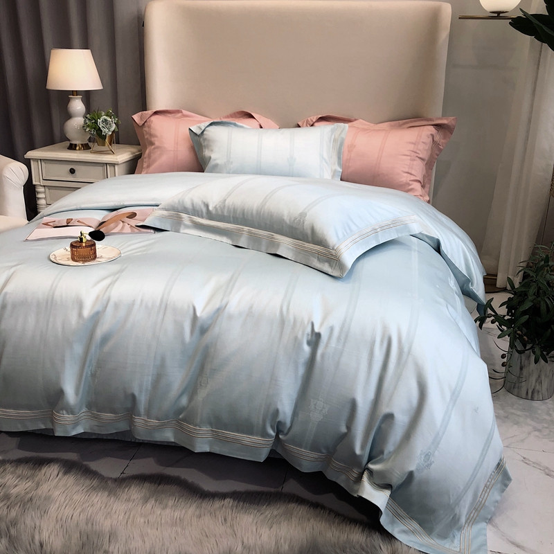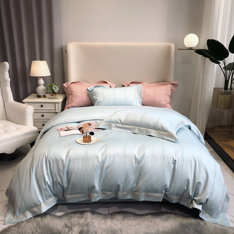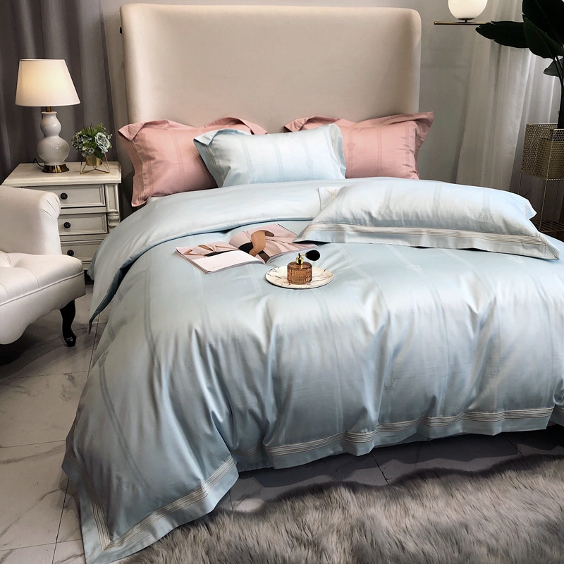 馨蕊家居 2021新品春夏高定100支米娜四件套浅蓝