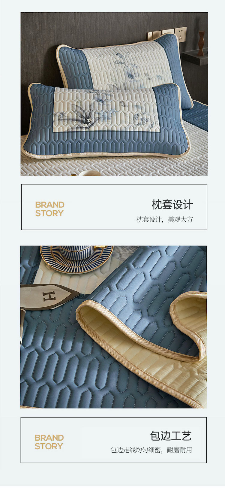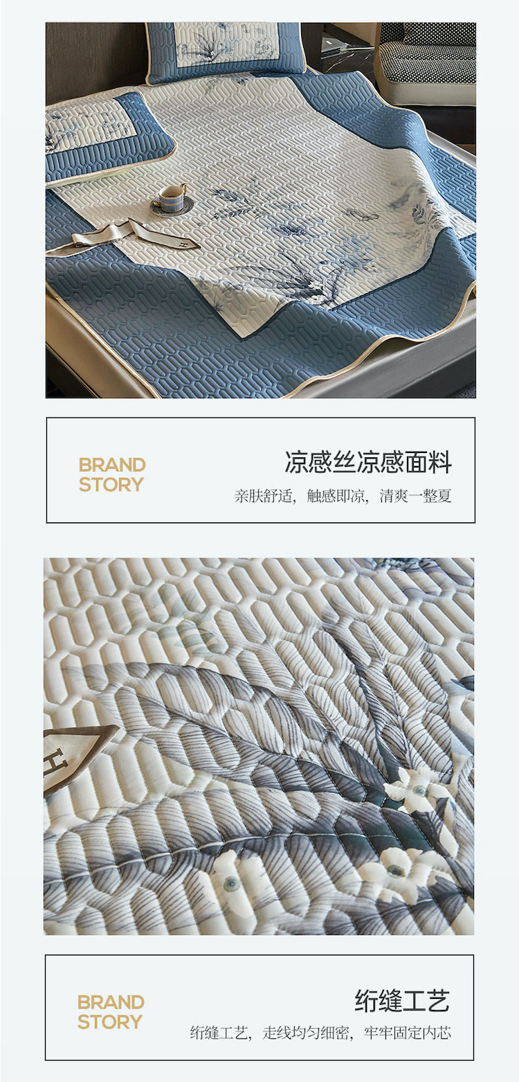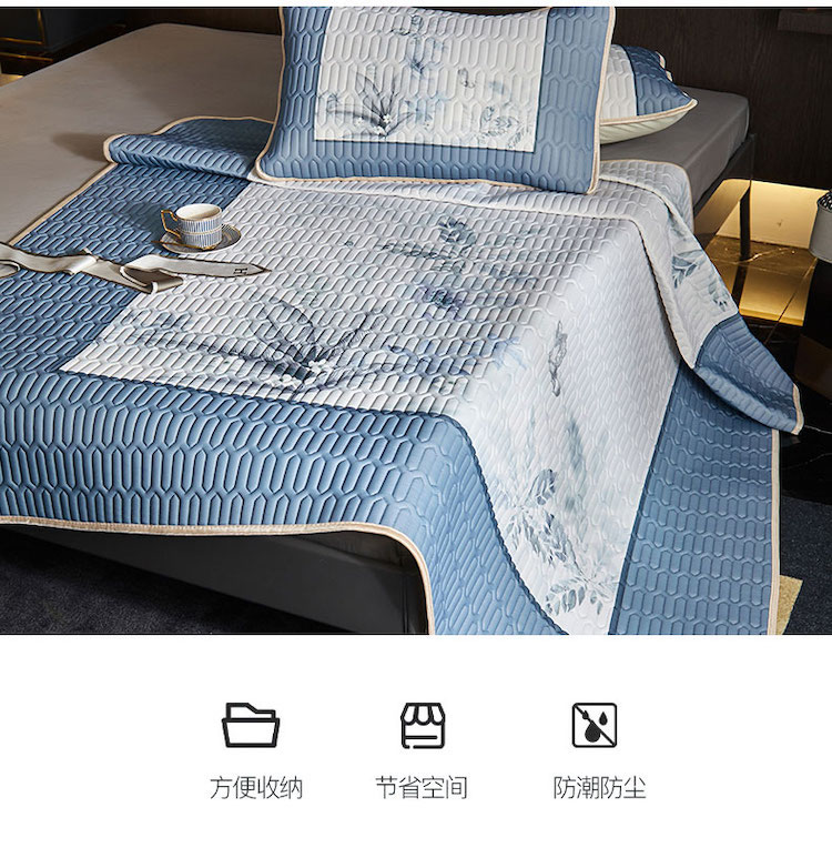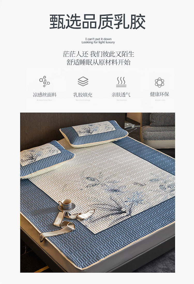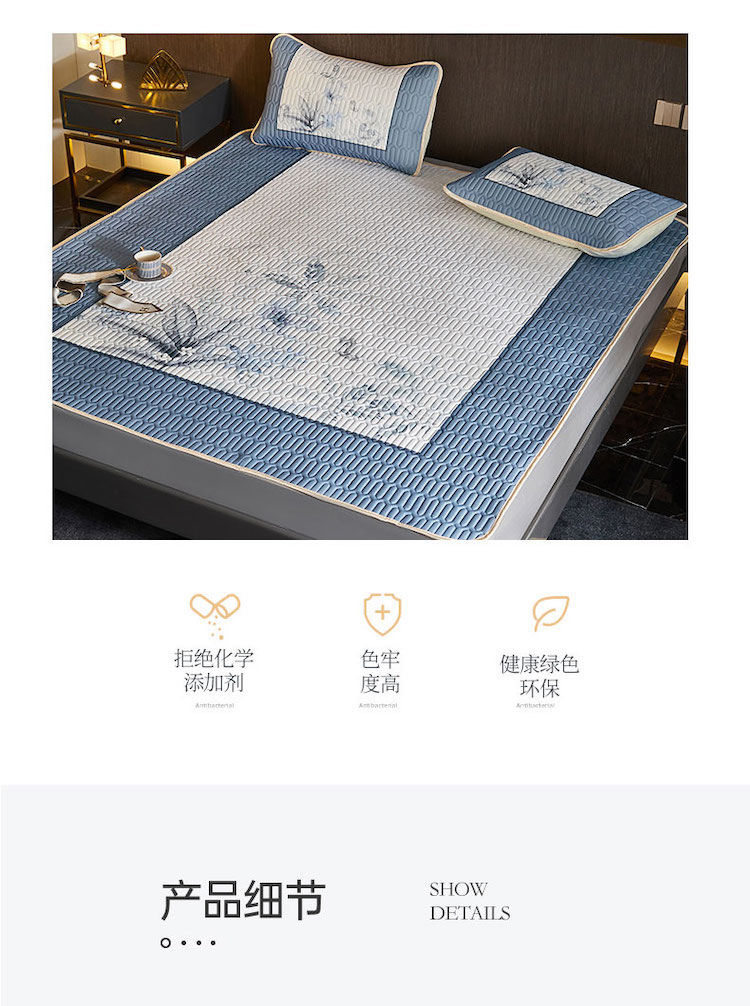 商品名称:凡客 2022春夏新款大版数码印花凉感丝乳胶凉席三件套 水墨