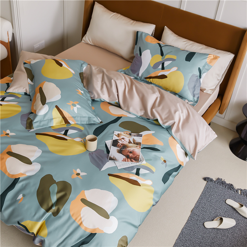 (总)优然居家纺 2025新款50支全棉纯棉印花法式双头木耳边四件套,觅棠,莫妮卡艾绿,莫妮卡罗兰,慕斯粉,薇薇安