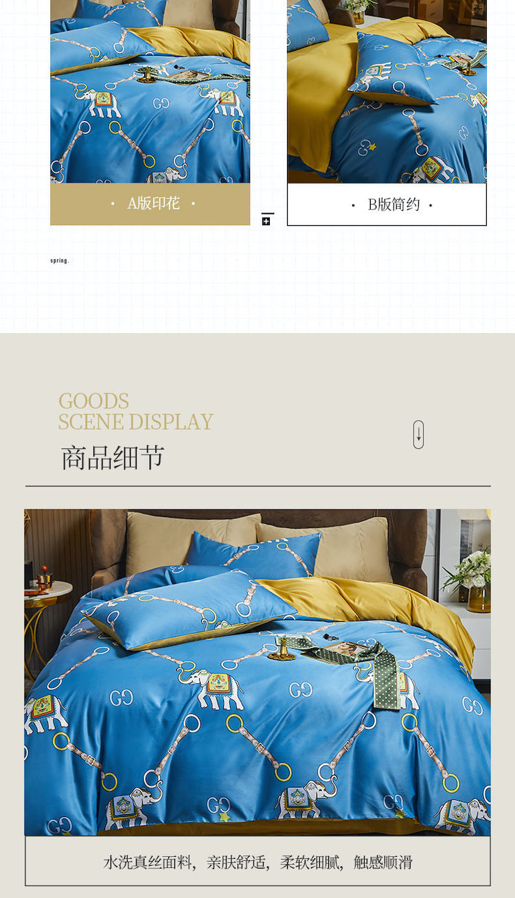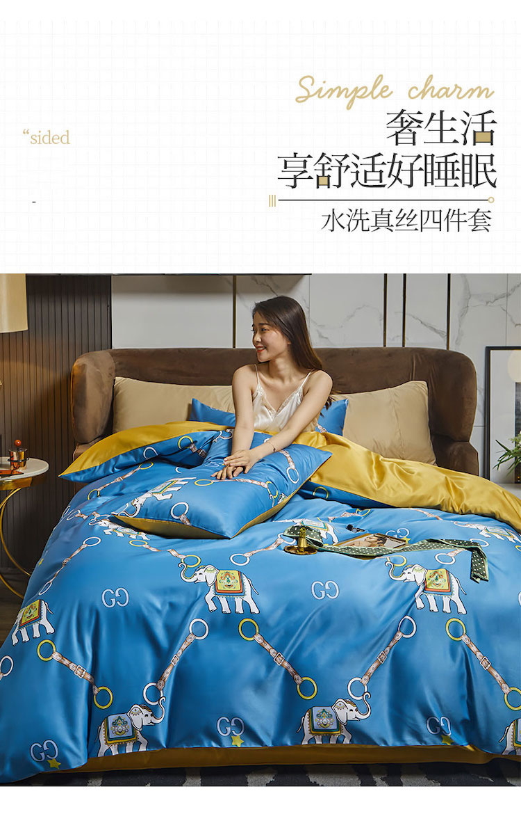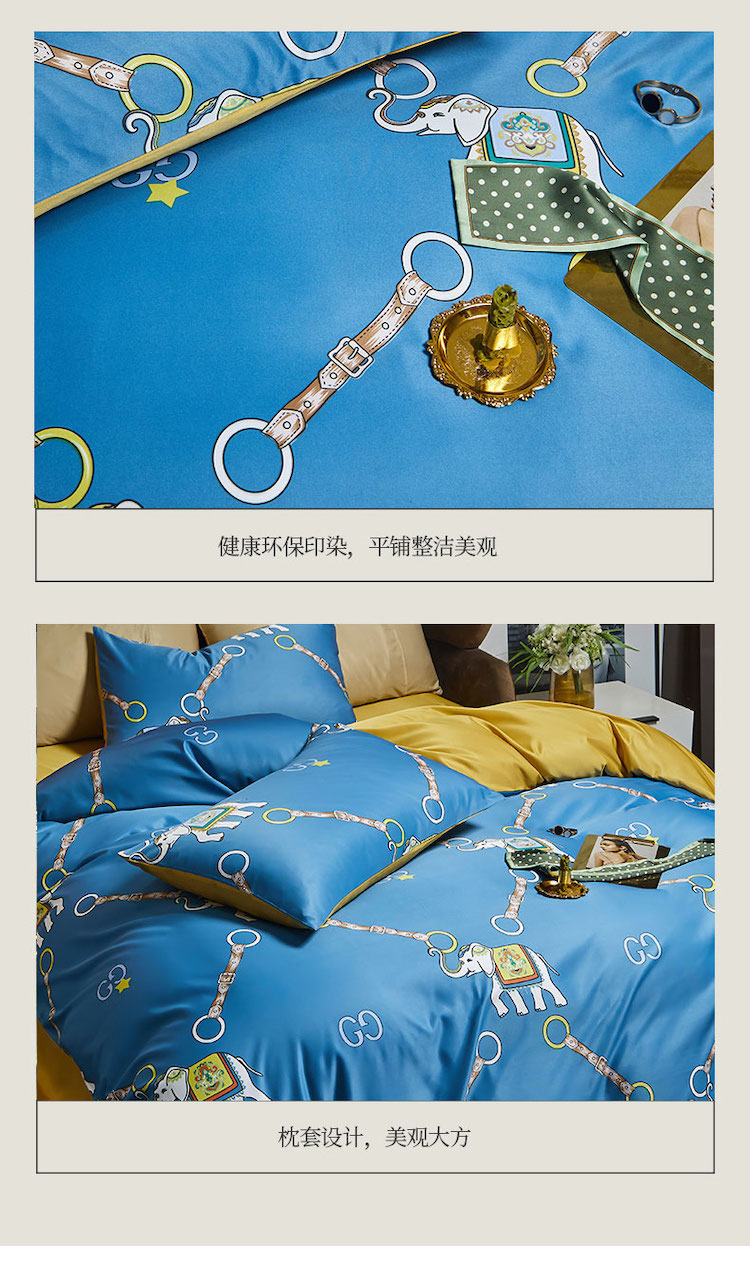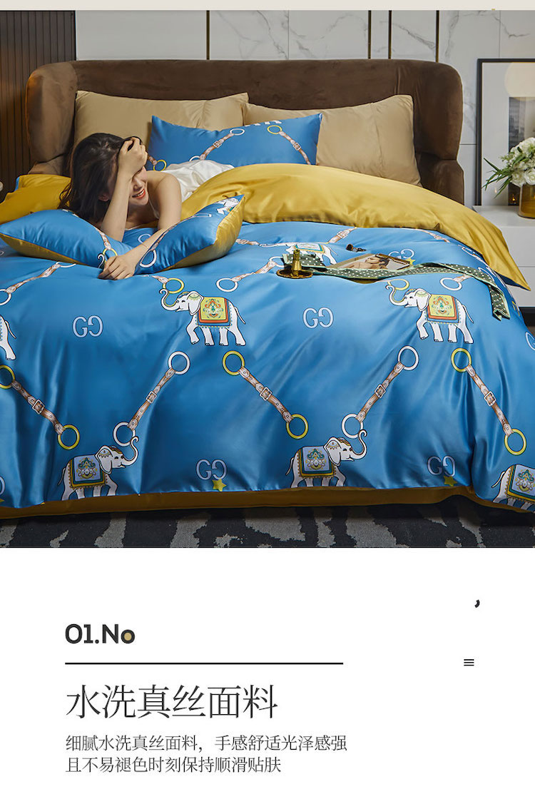 凡客 2021春夏新款60支水洗真丝数码印花四件套轻奢风系列 伊莎象景