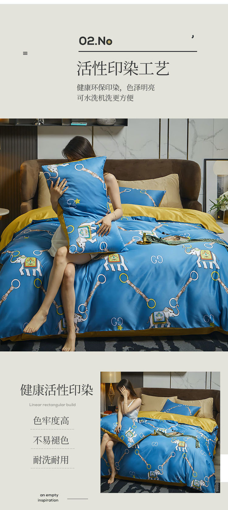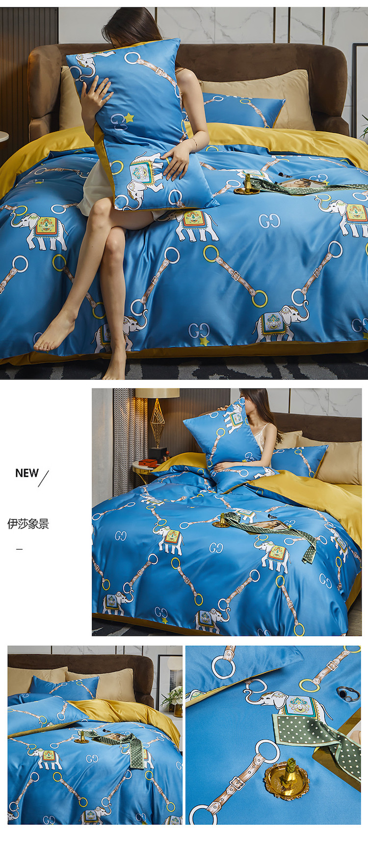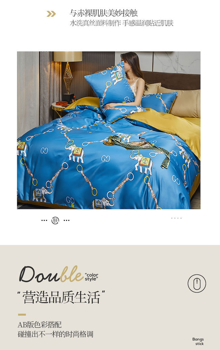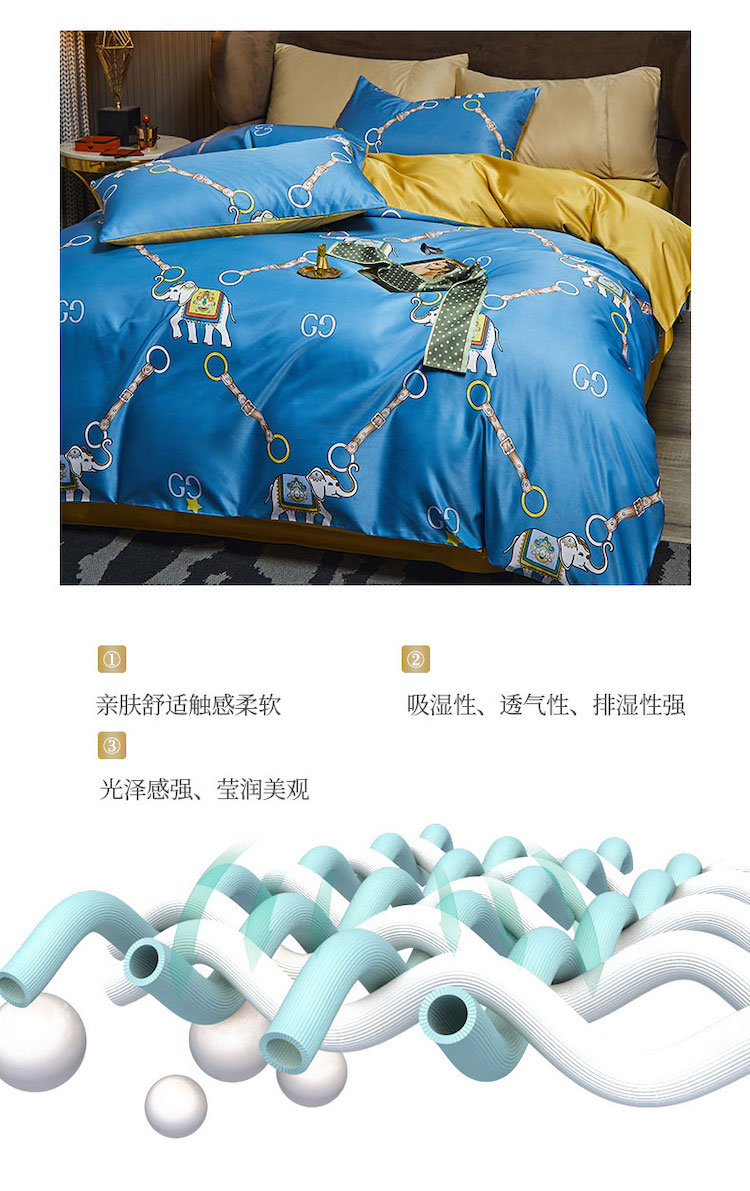 凡客 2021春夏新款60支水洗真丝数码印花四件套轻奢风系列 伊莎象景