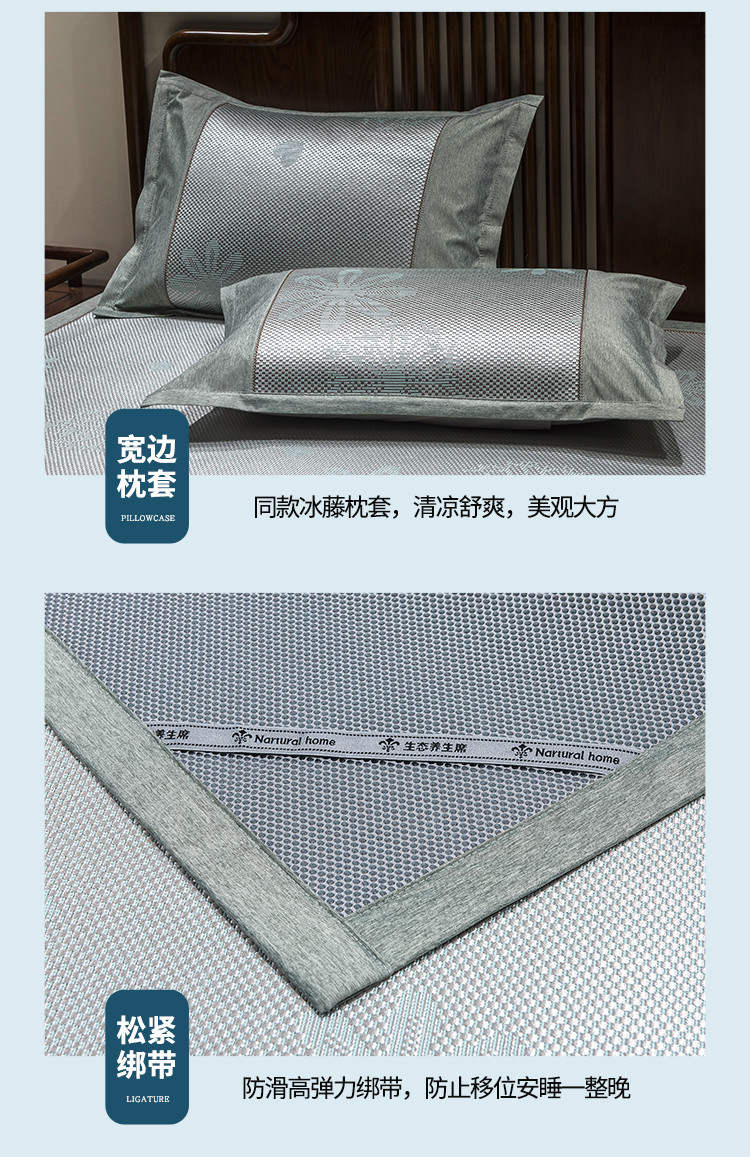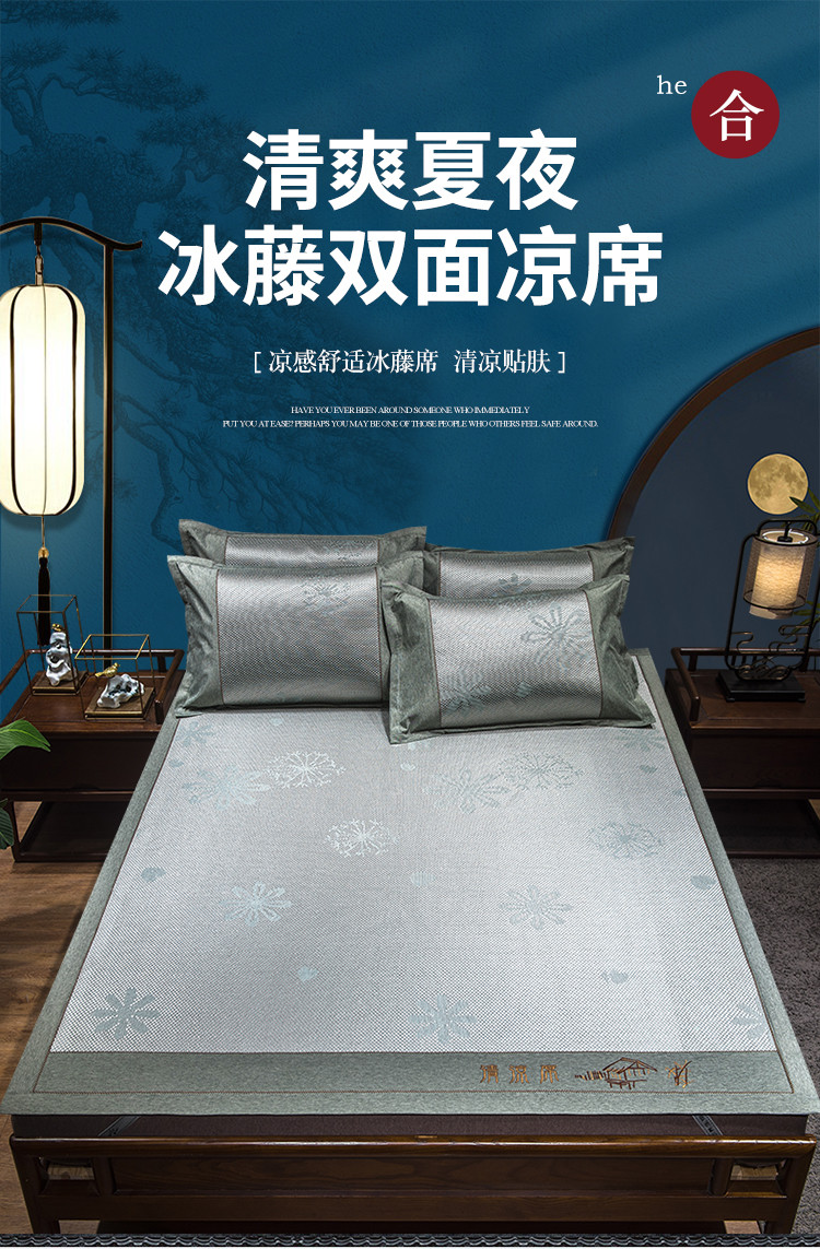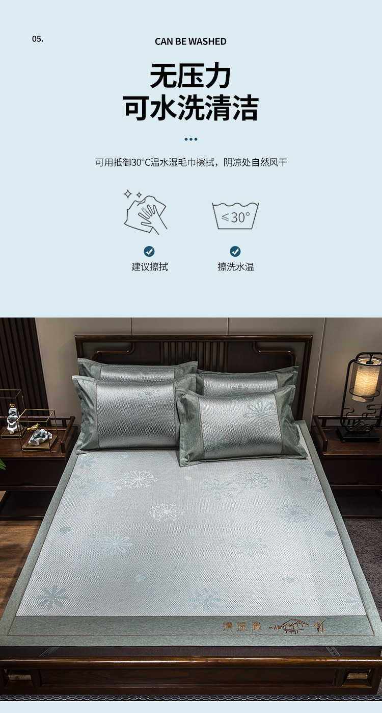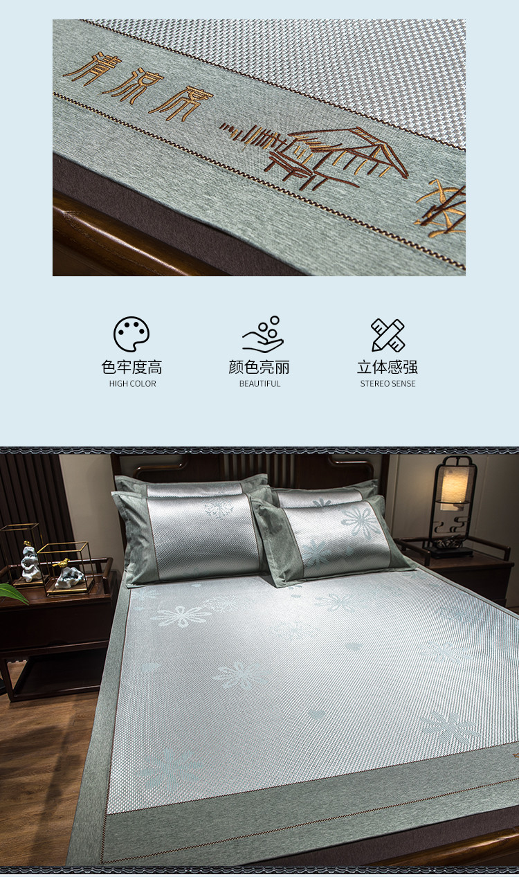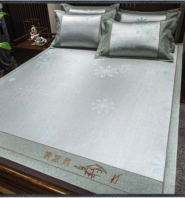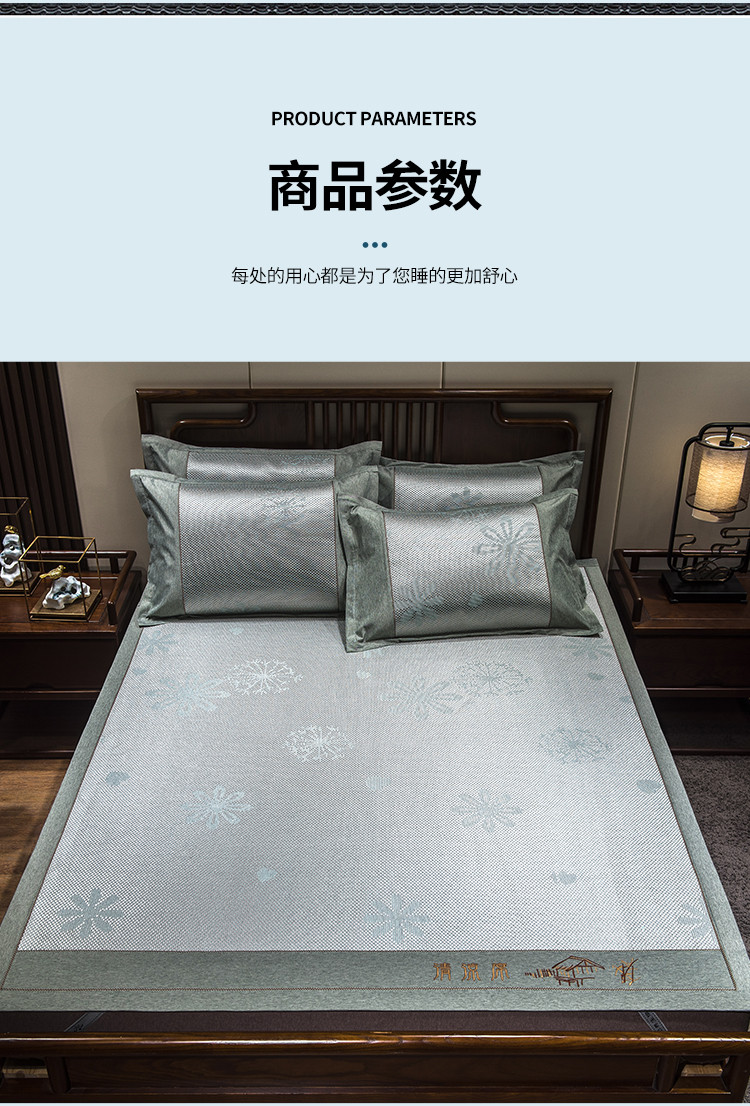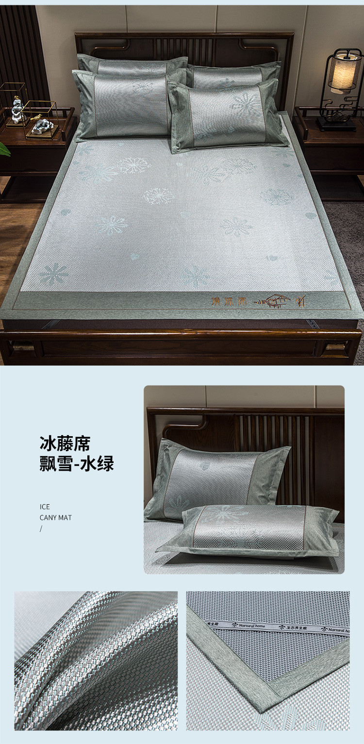 当前位置: 91家纺网 > 商品网购 > 床上用品 > 凉席 > 藤席 > 全季家居 2021新款宽边绣花冰藤席三件套 飘雪-水绿