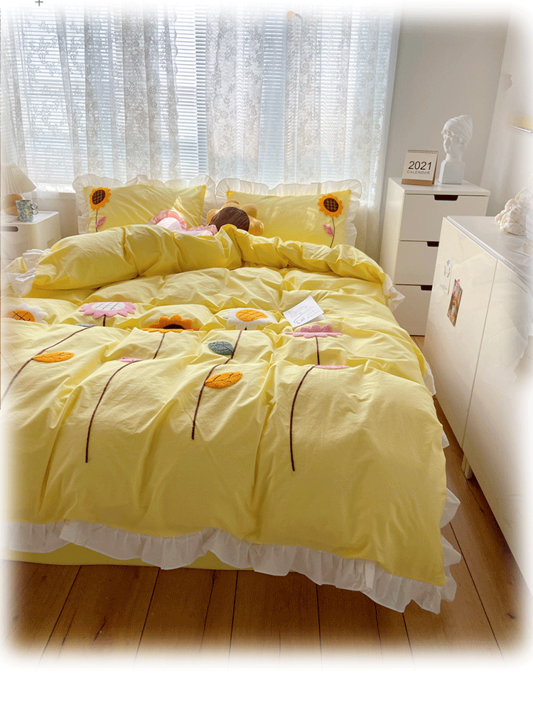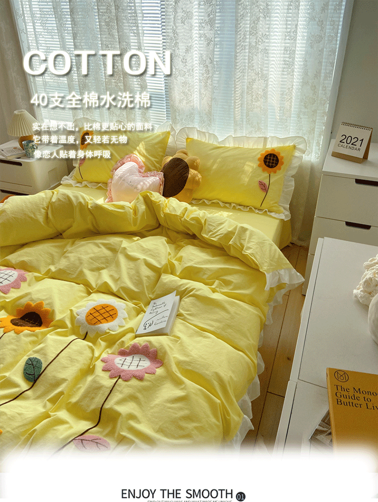 淑女公社 2021新款全棉毛巾绣向日葵系列四件套 黄色
