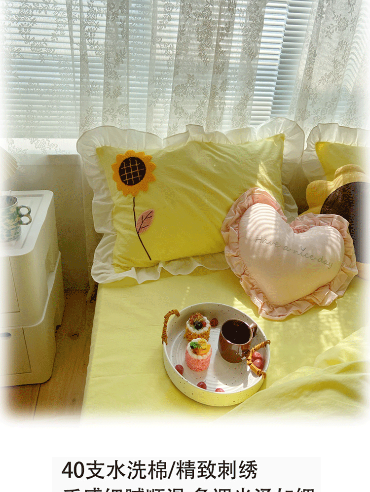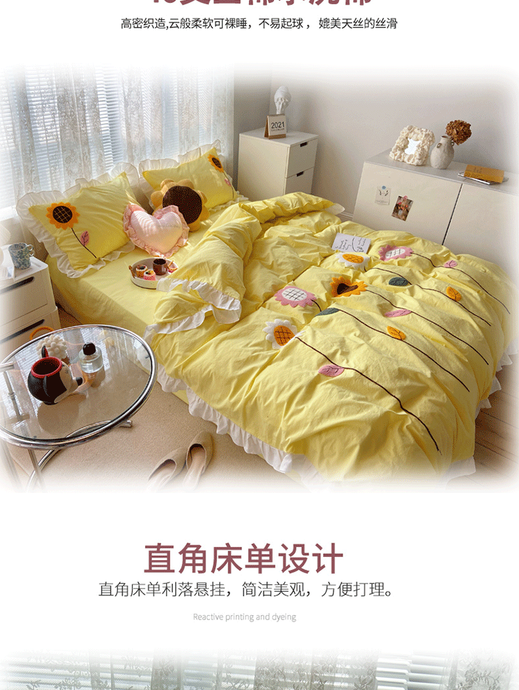 (总)淑女公社 2022新款全棉四件套纯棉少女心事系列直播,初恋粉,奶油黄,春天绿,海洋蓝