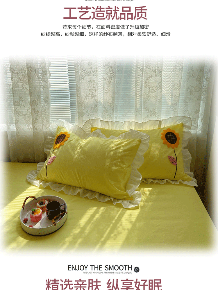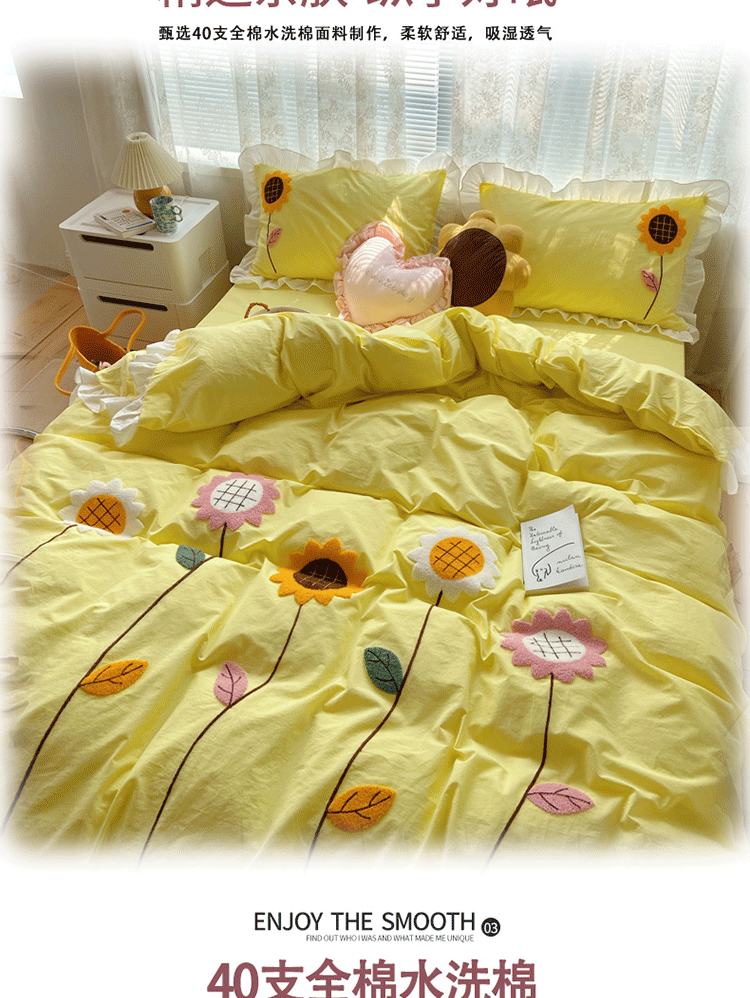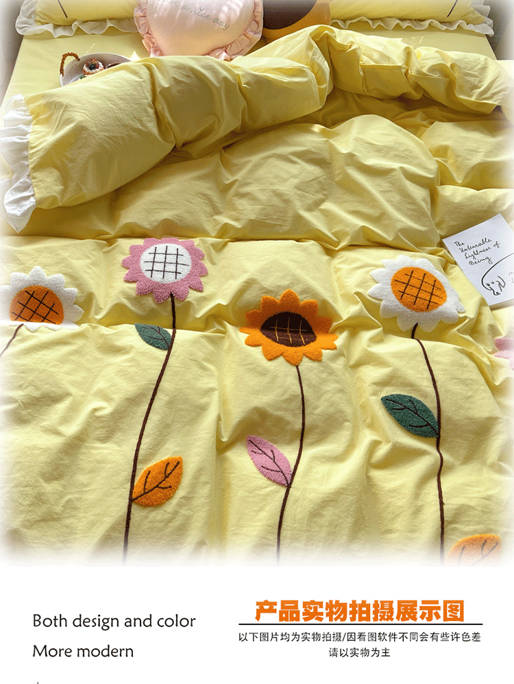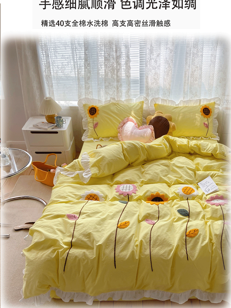 商品名称:淑女公社 2021新款全棉毛巾绣向日葵系列四件套 黄色