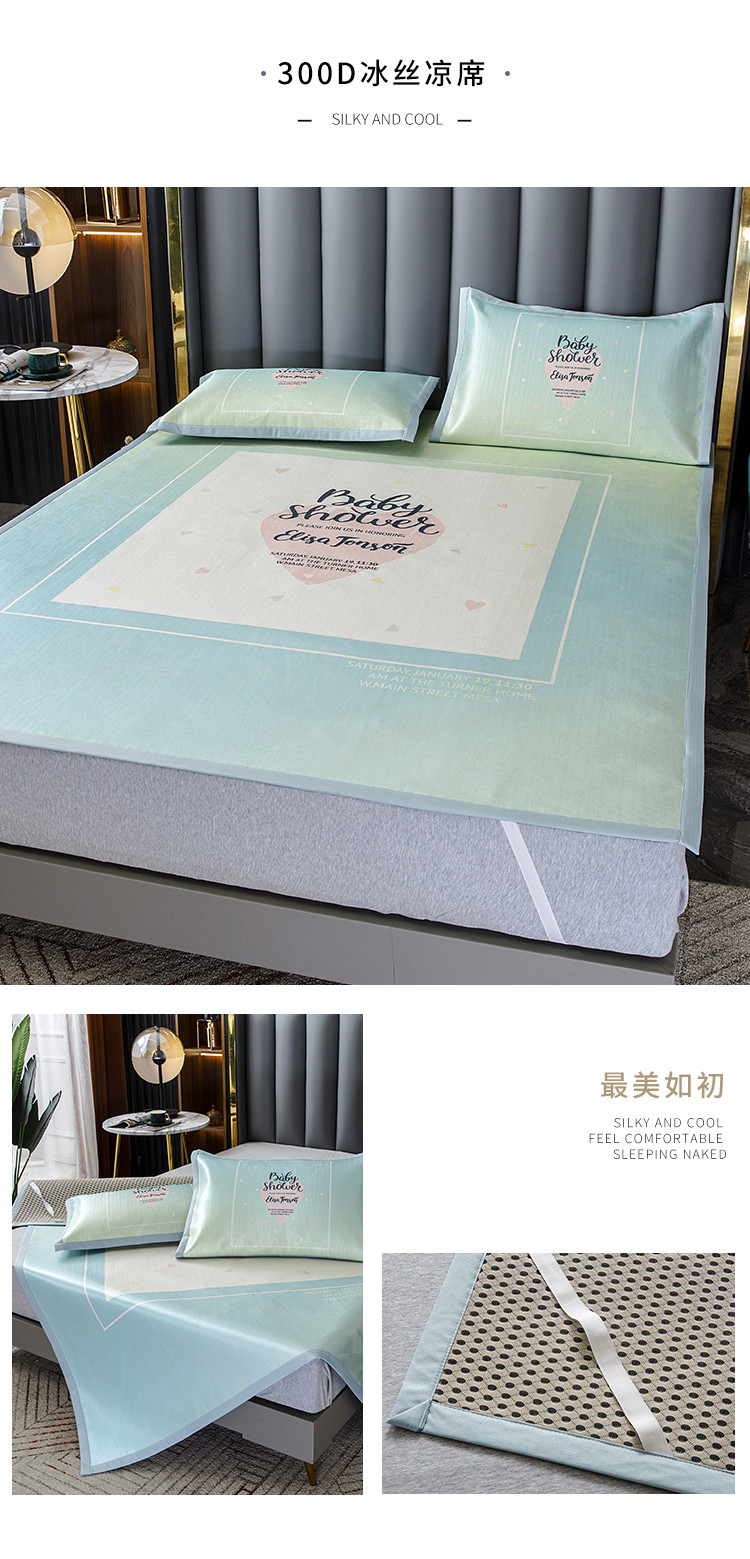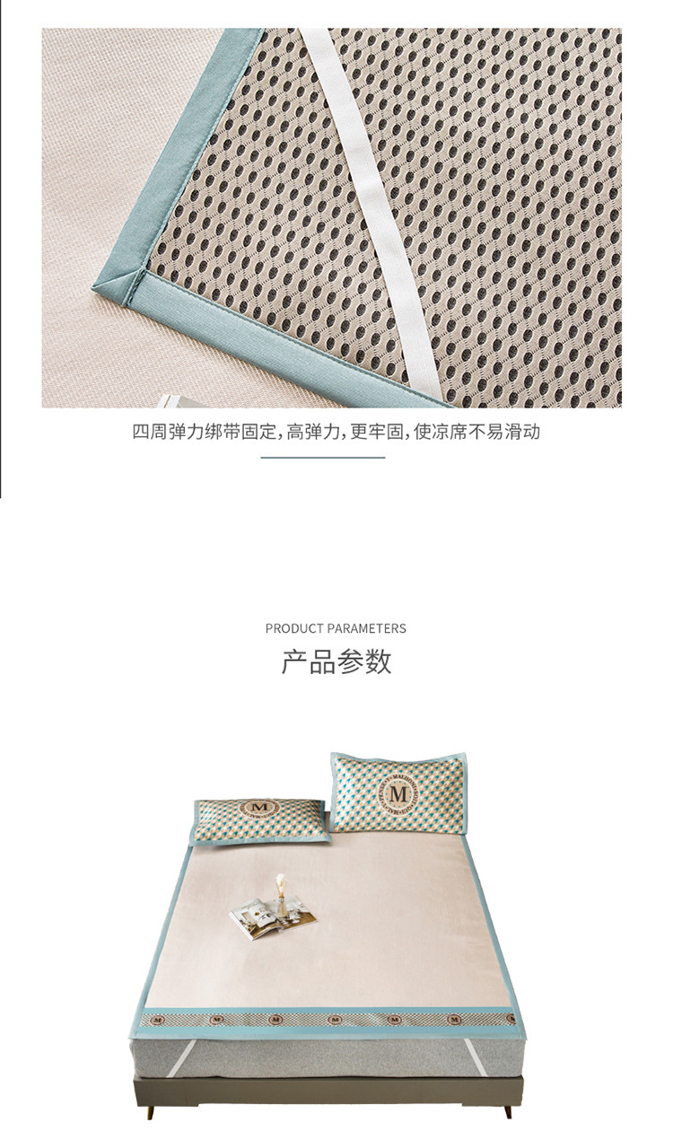 商品名称:小芽家居 2024新款冰丝斜纹提花凉席三件套 最美如初