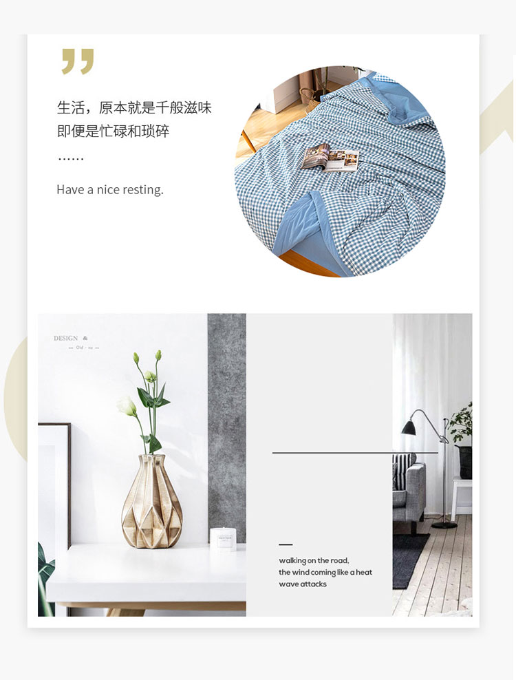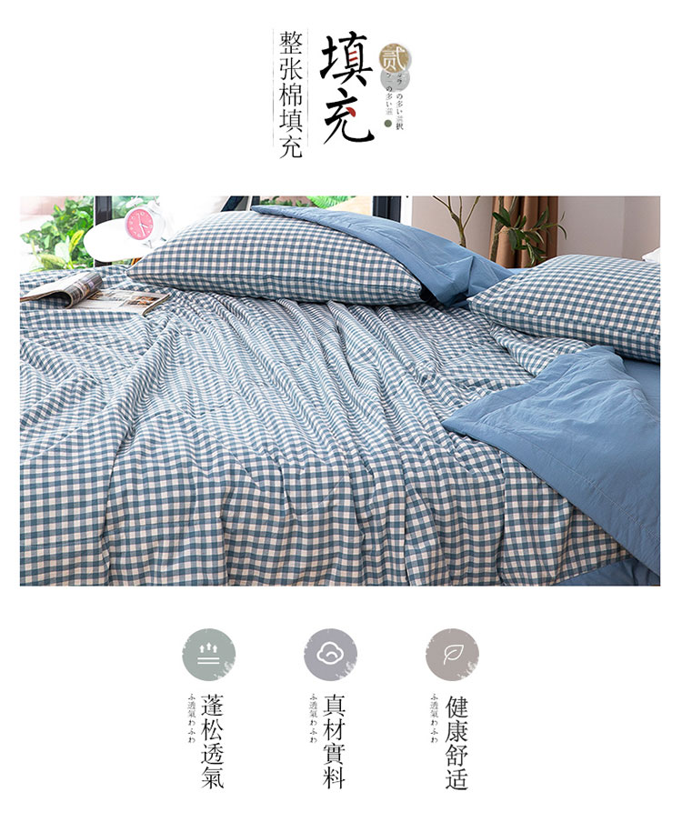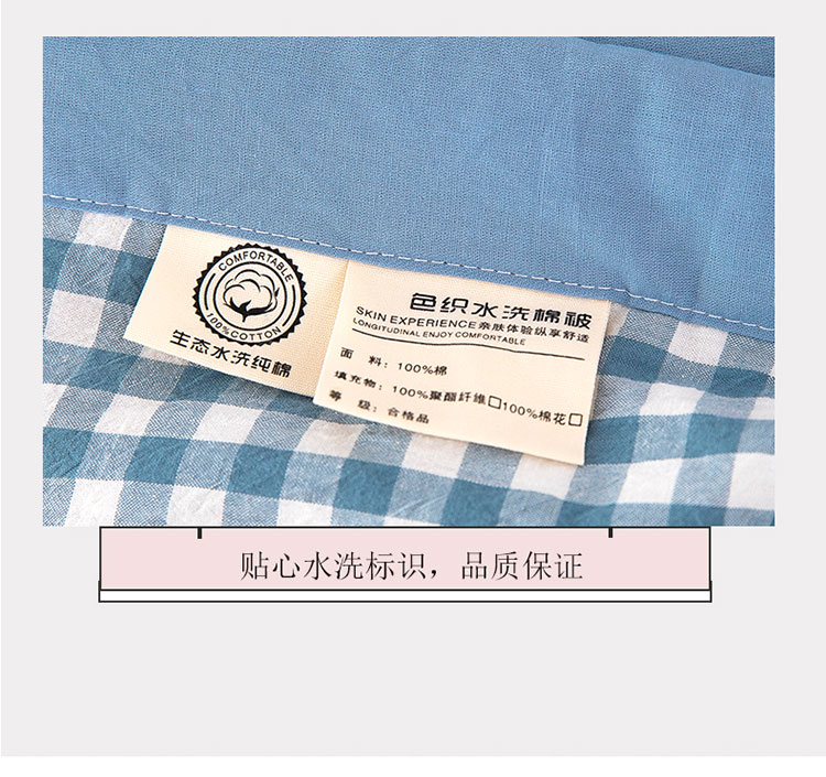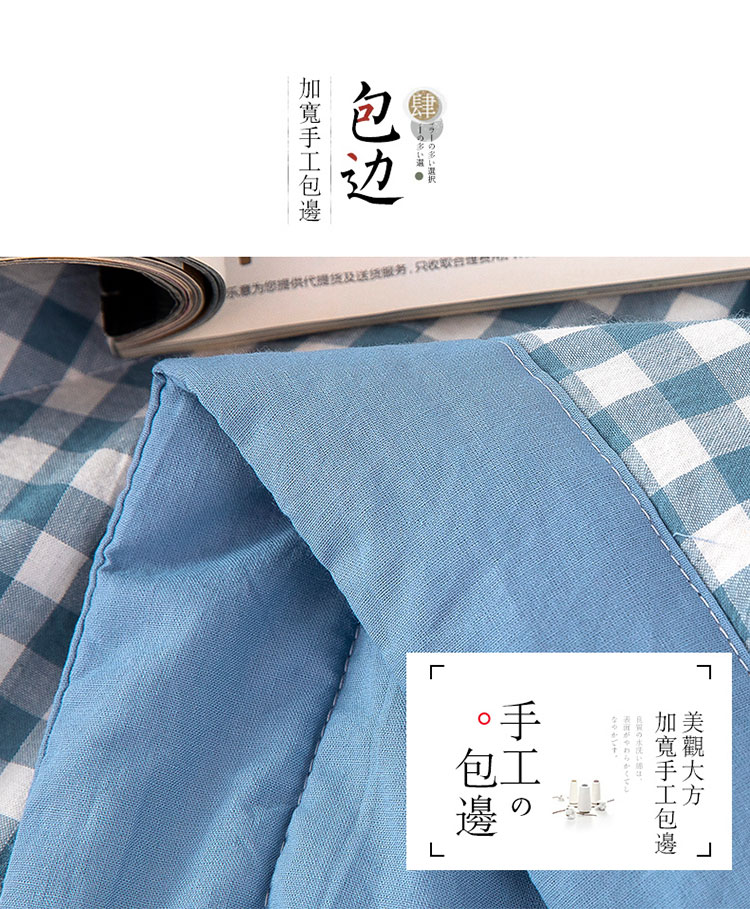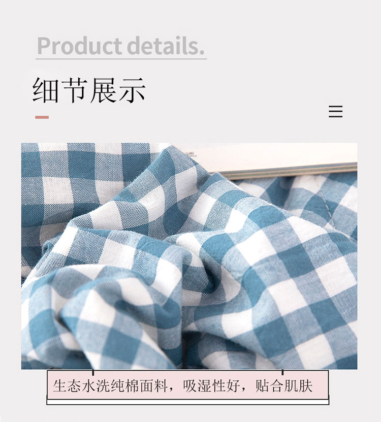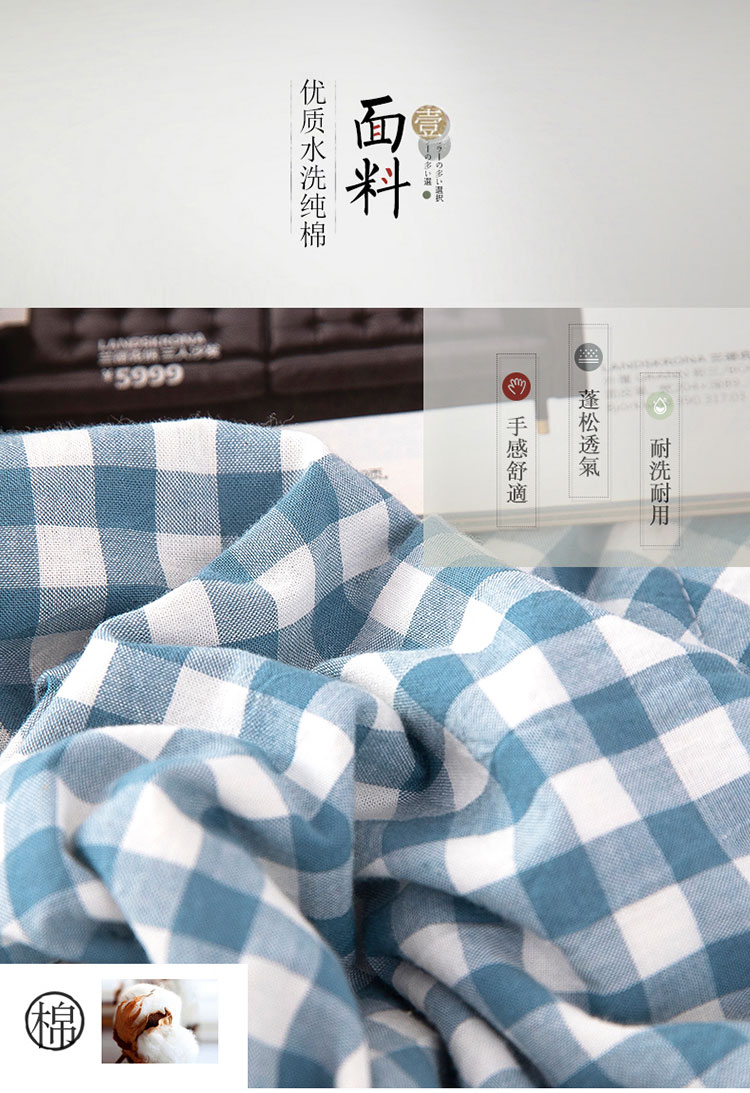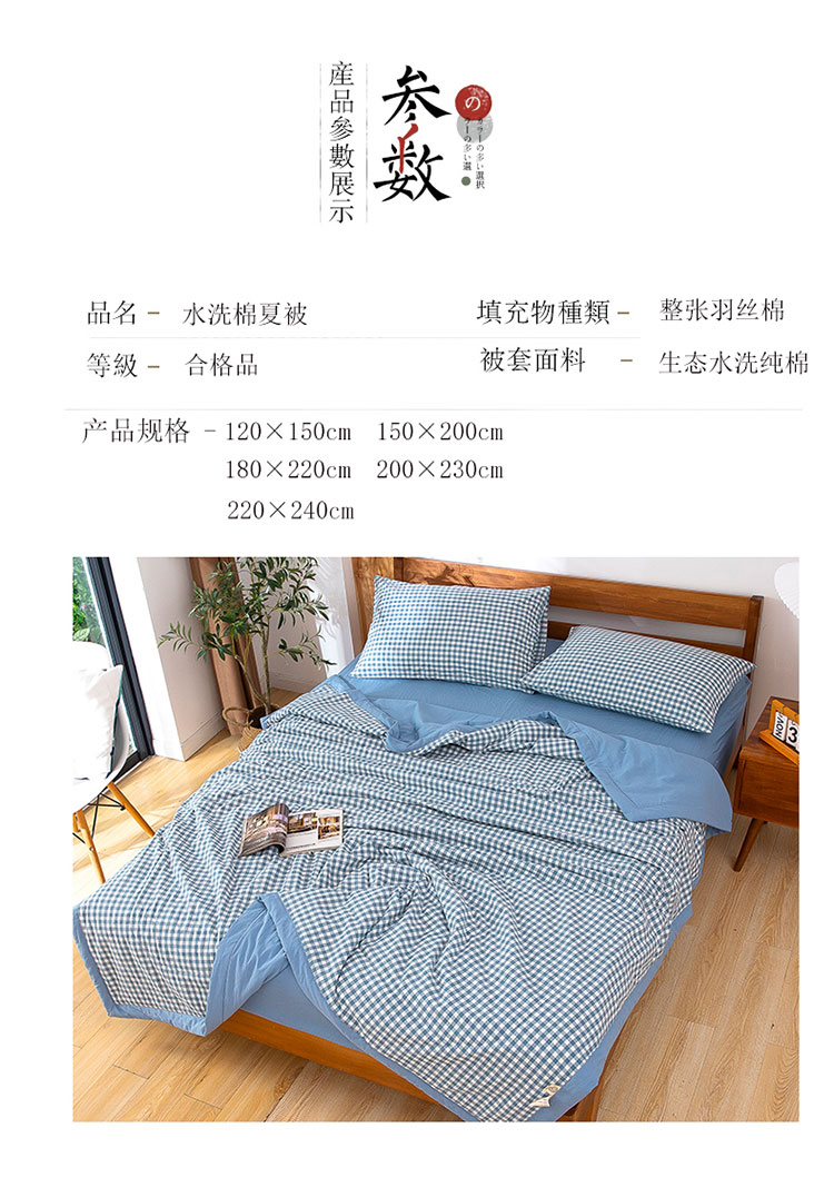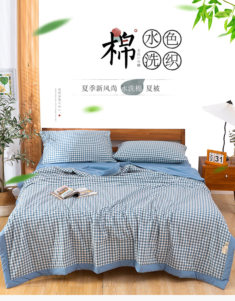 天瑜家纺 2023新款全棉色织水洗棉夏被 蓝小格