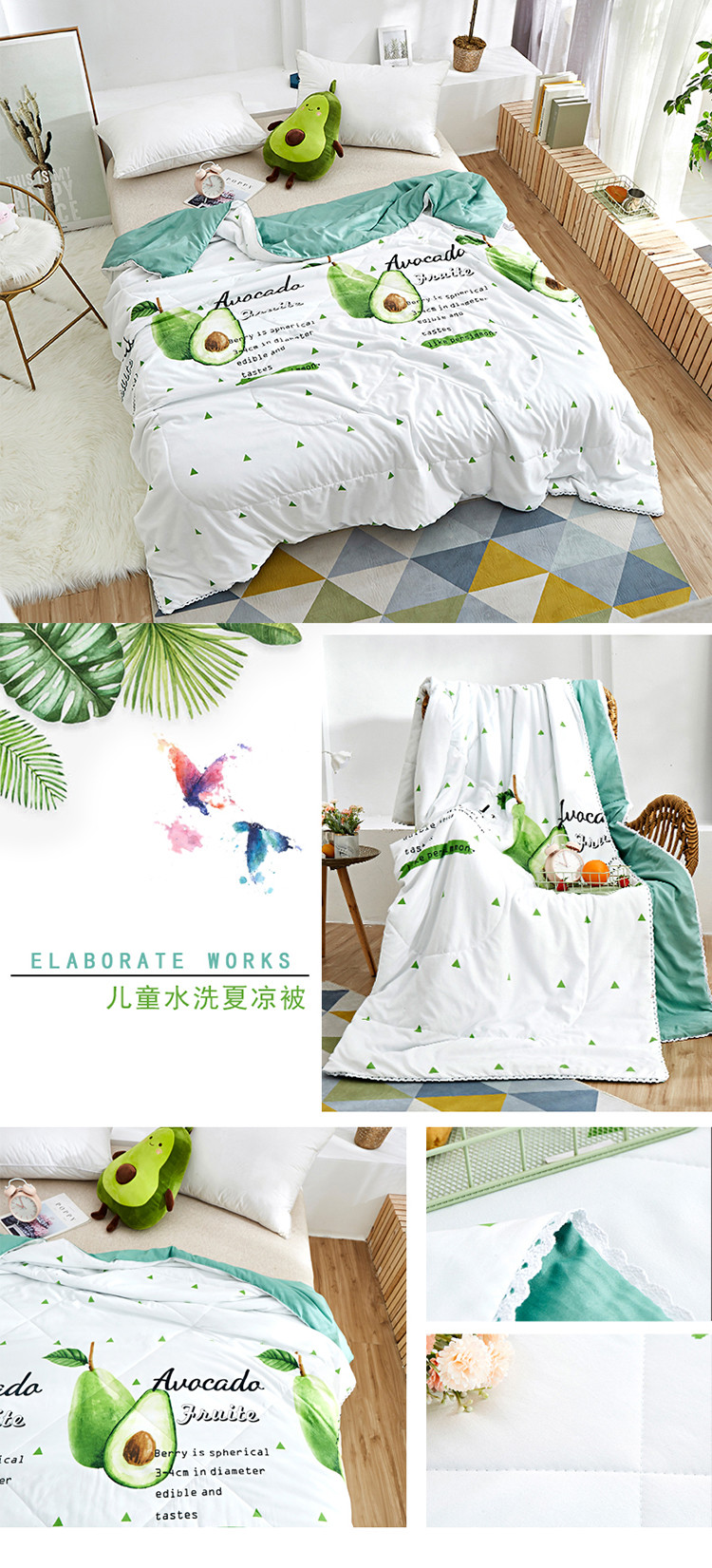 商品名称:畅销被业2023新款水洗棉夏被夏凉被 牛油果