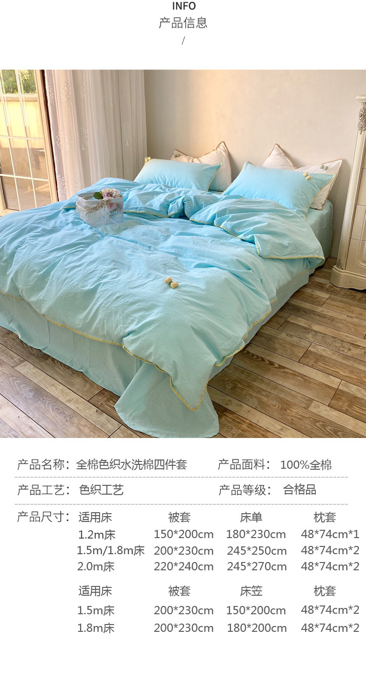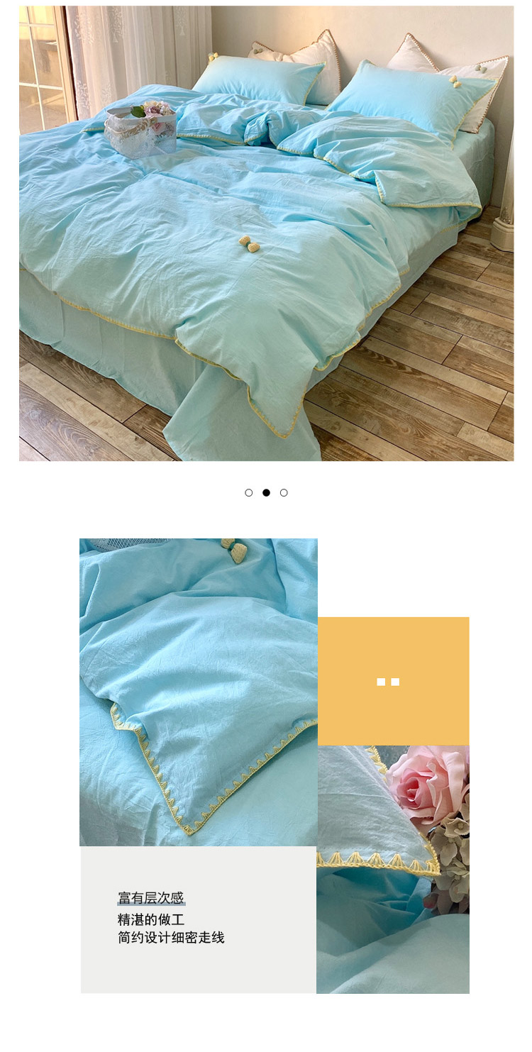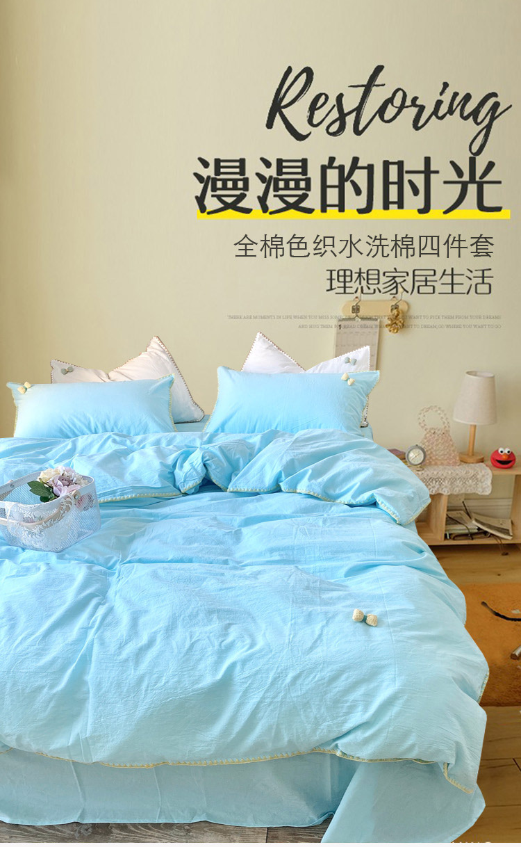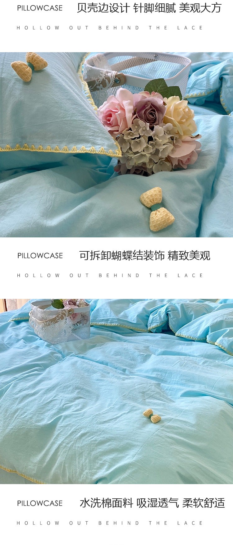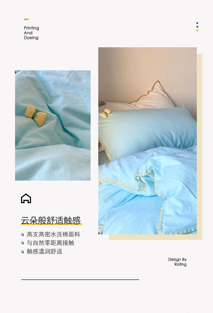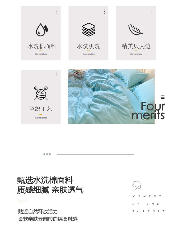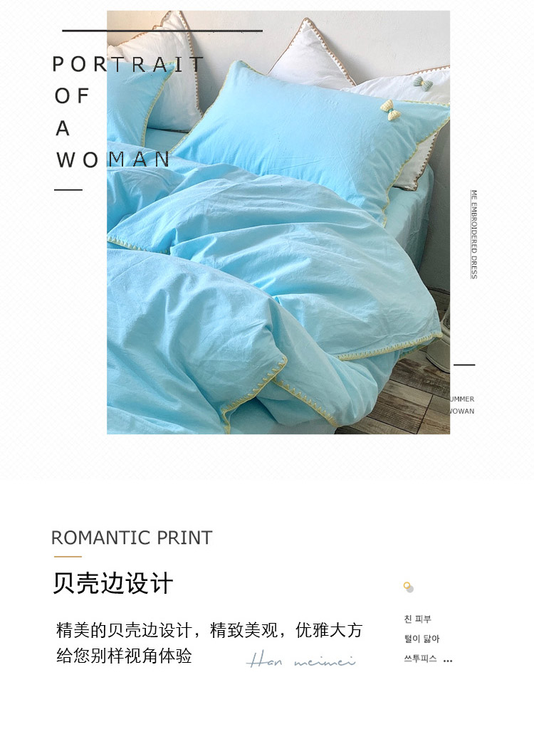 商品名称:玛奇朵2021新款全棉色织水洗棉贝壳边四件套妮可系列妮可-蓝