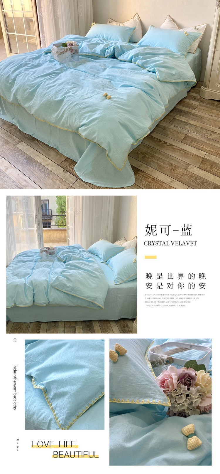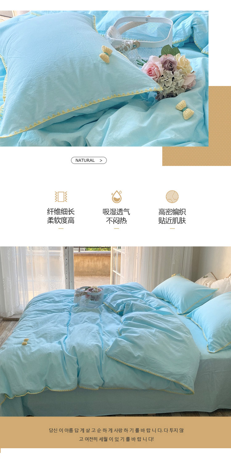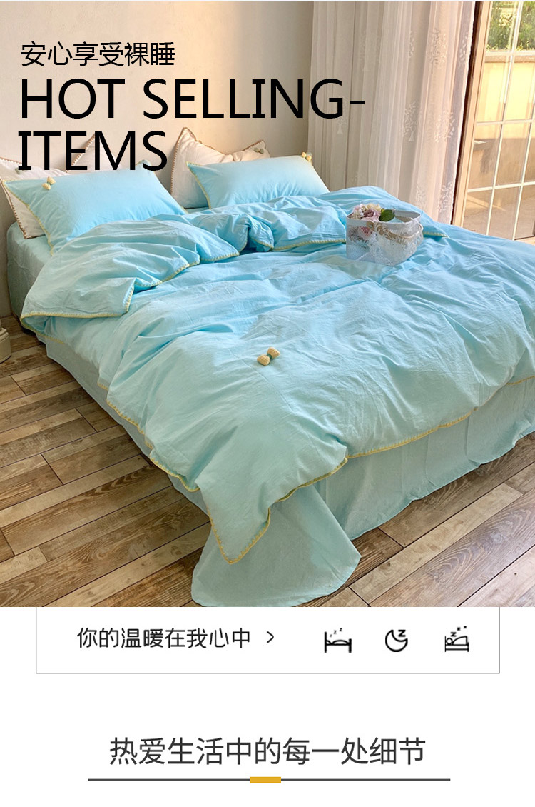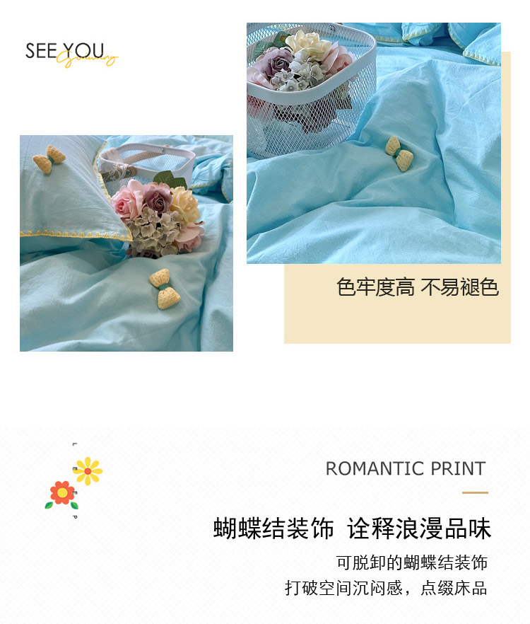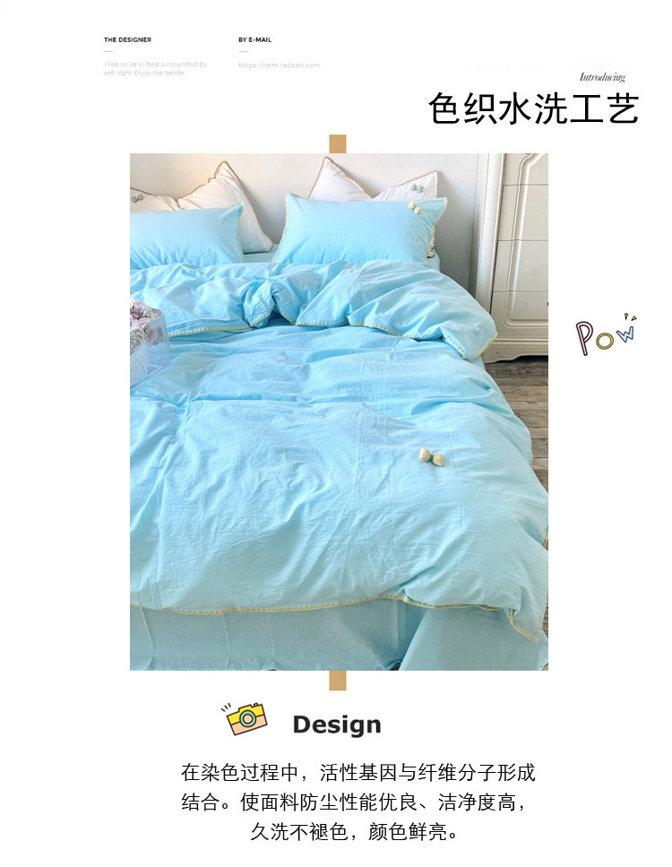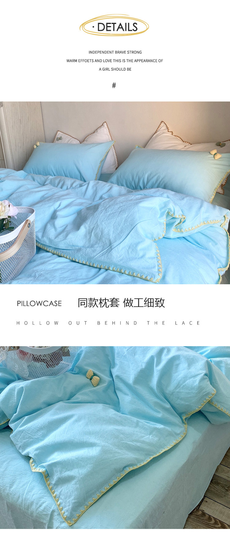 商品名称:玛奇朵2021新款全棉色织水洗棉贝壳边四件套妮可系列妮可-蓝