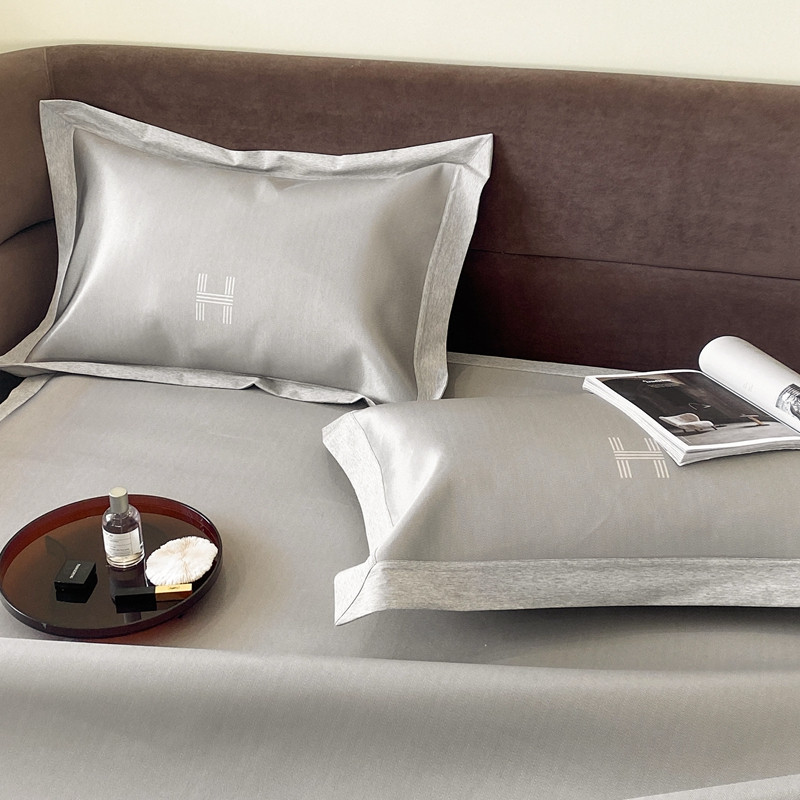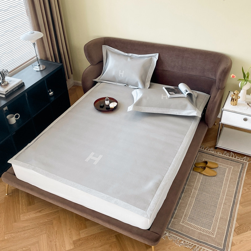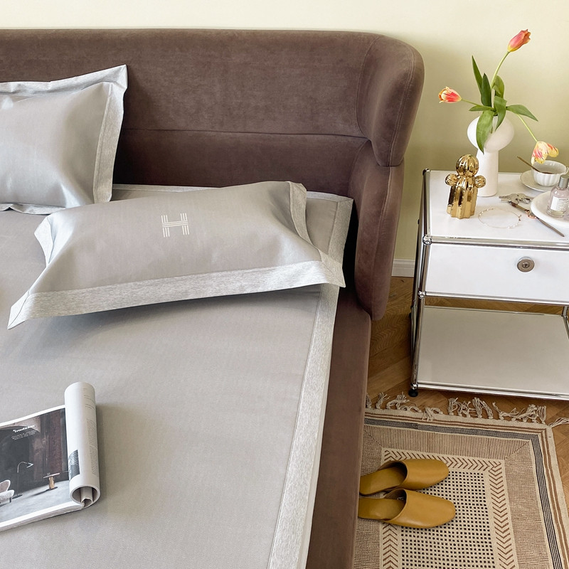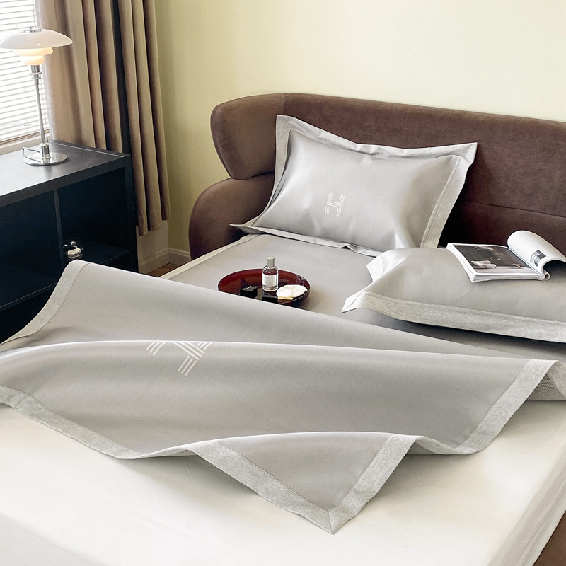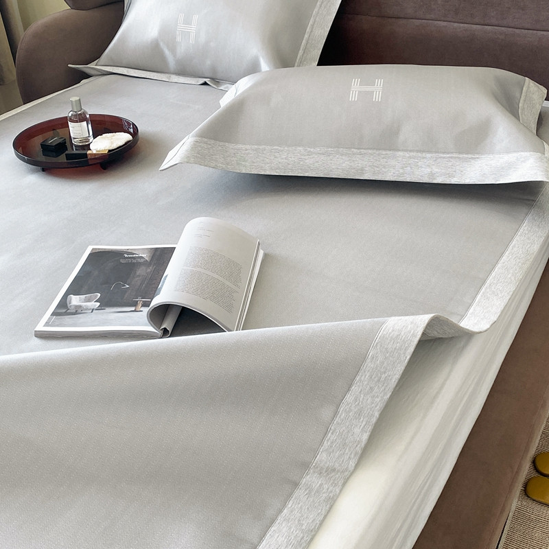 时年家纺 2021新款水洗冰露丝养生凉席数码印花-轻奢 H-浅灰