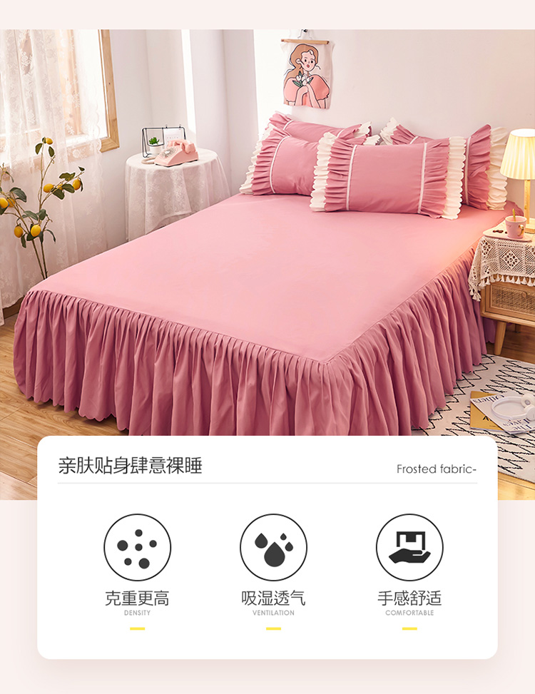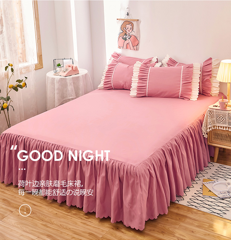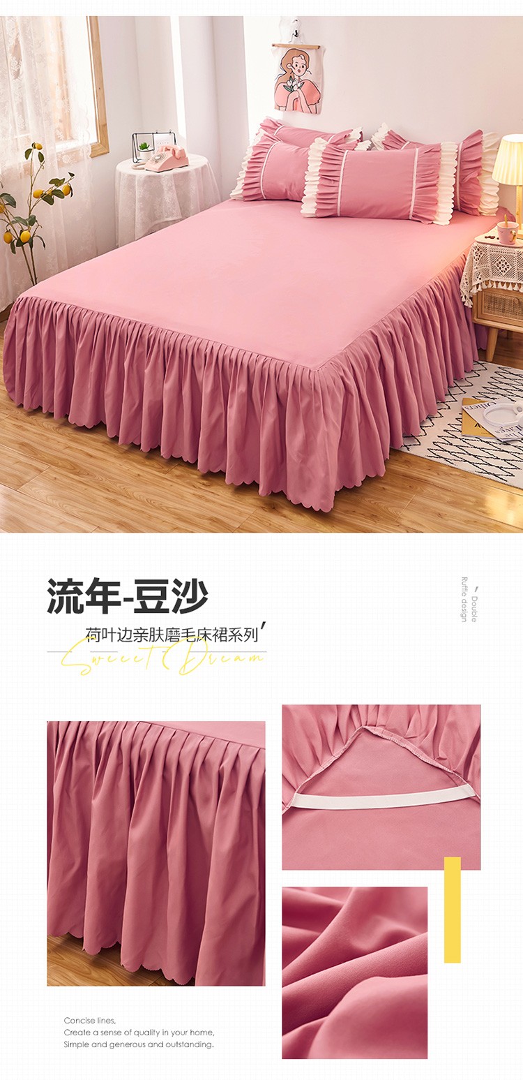 商品名称:莉莉安 2025新款荷叶边亲肤磨毛单床裙-流年系列 流年-豆沙