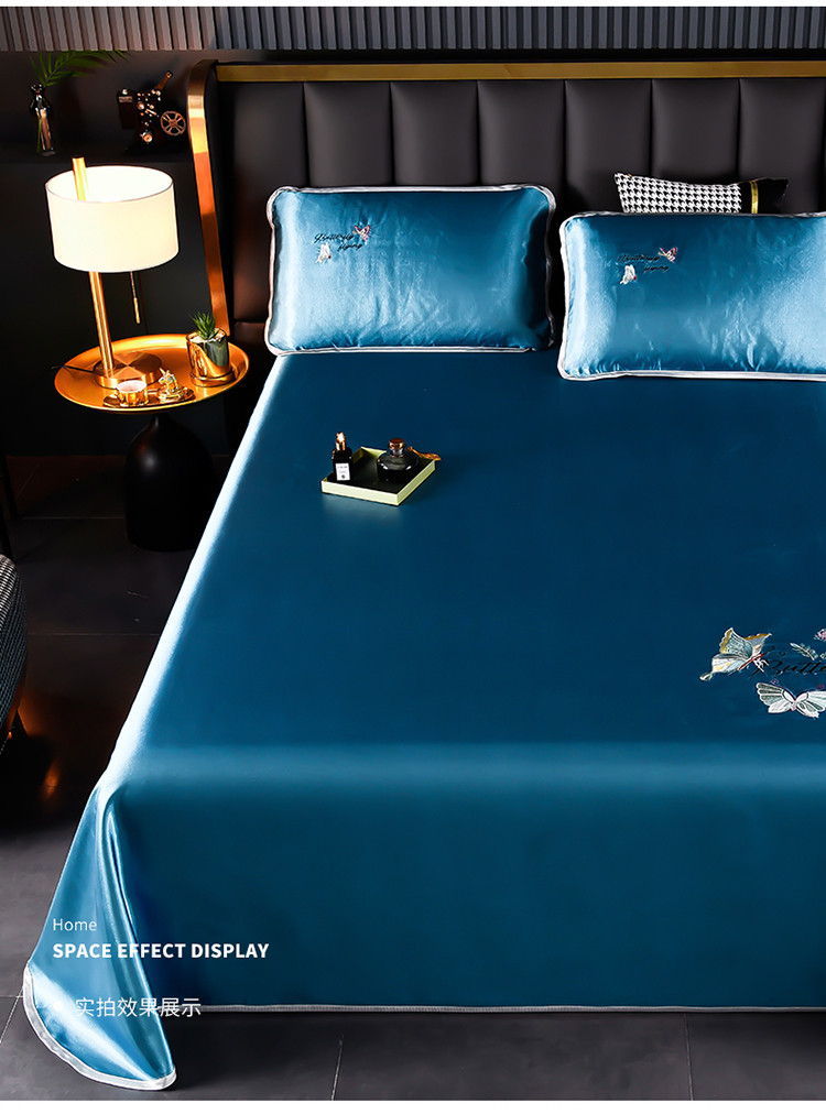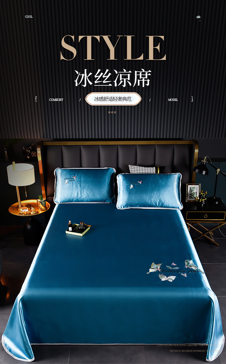商品名称:芃成家纺 2021新款冰丝凉席刺绣床单款 蝴蝶宾利兰
