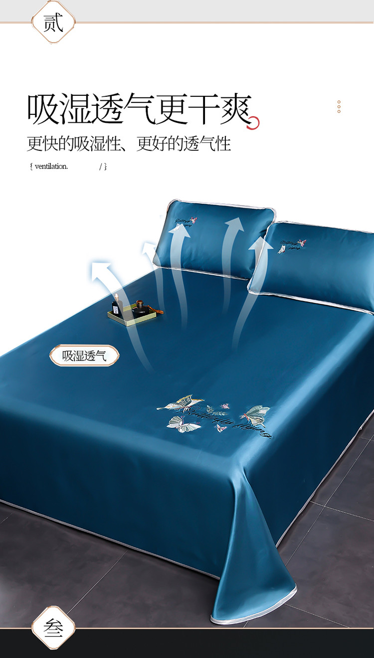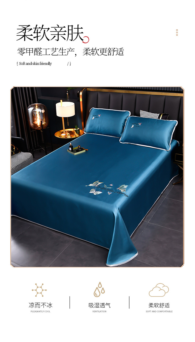 芃成家纺 2021新款冰丝凉席刺绣床单款 蝴蝶宾利兰