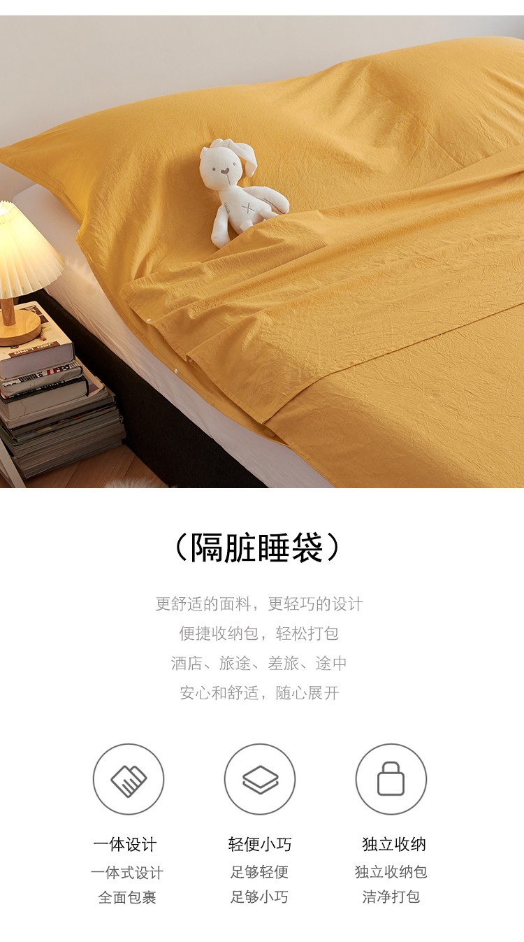 无印色织全棉水洗棉酒店隔脏睡袋便携式出差旅游行单双人床单被套