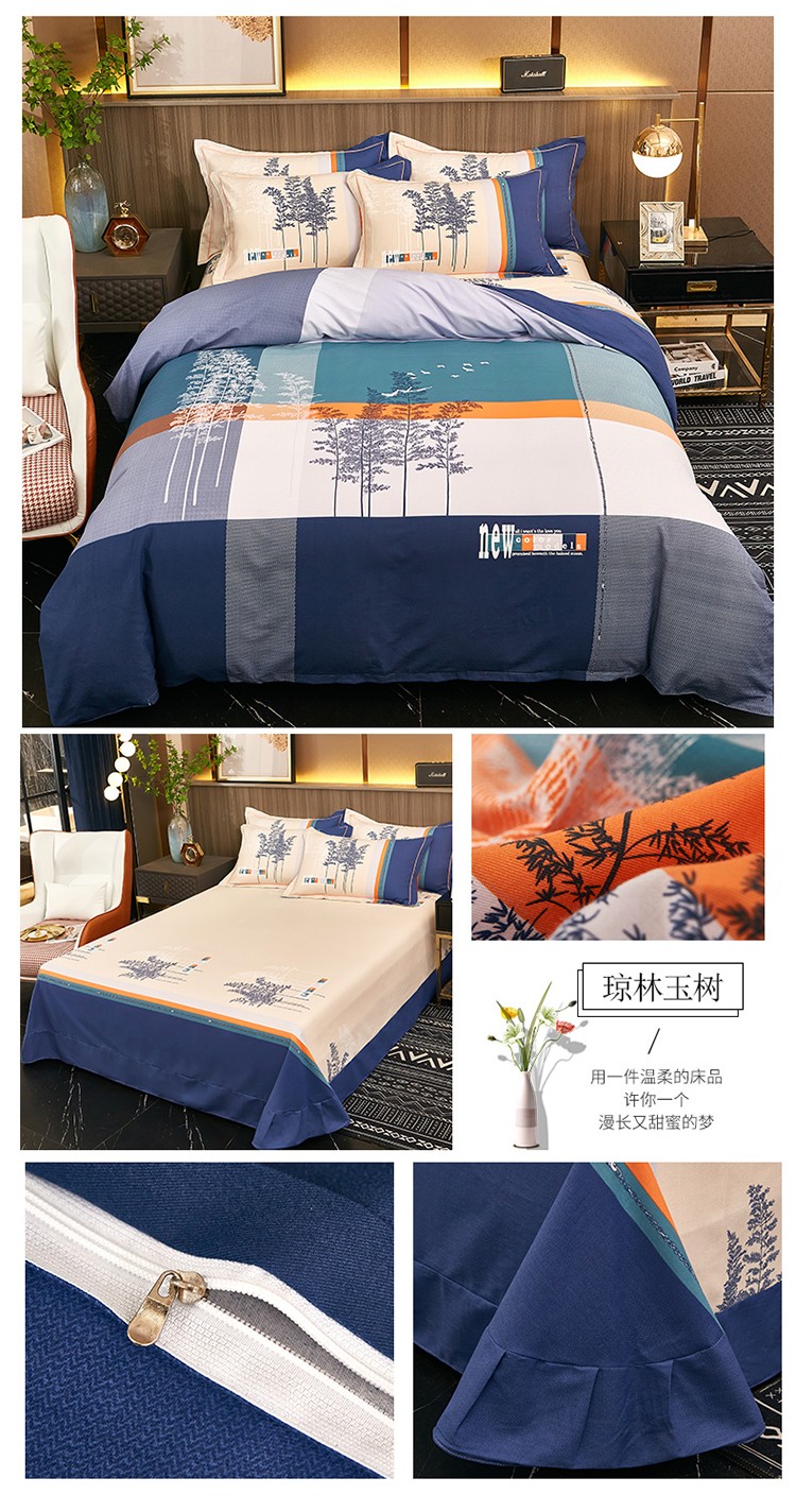 商品名称:雲归梦2021全棉大版生态磨毛四件套格条花型第1批 琼林玉树