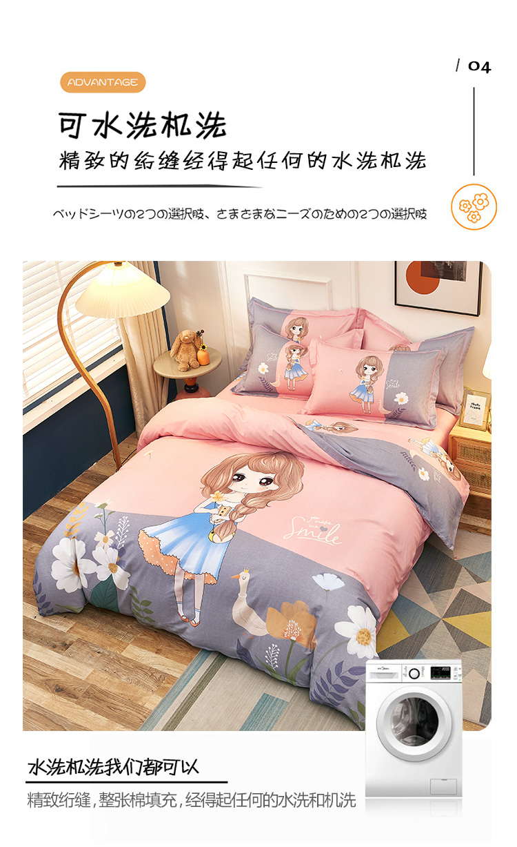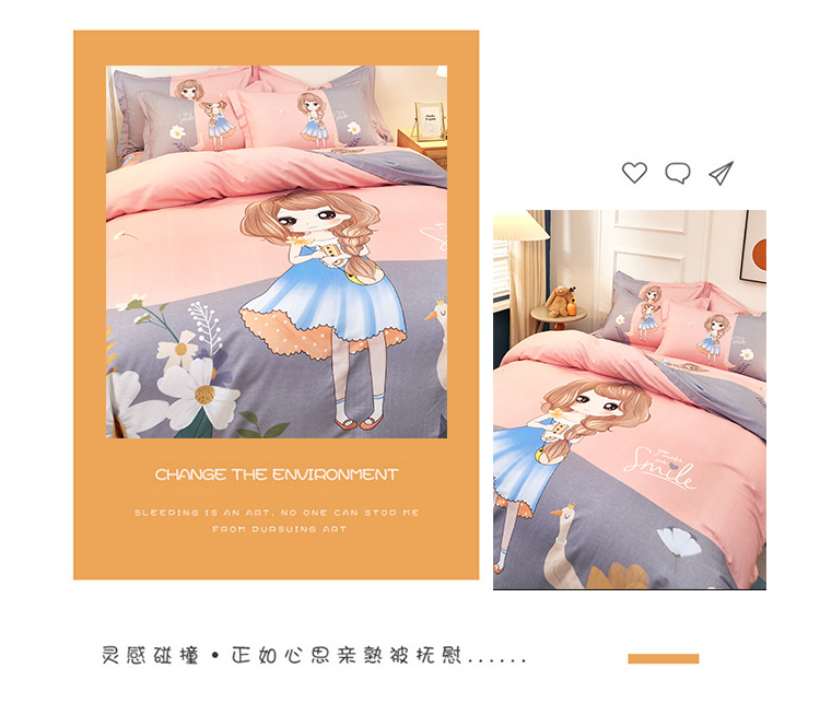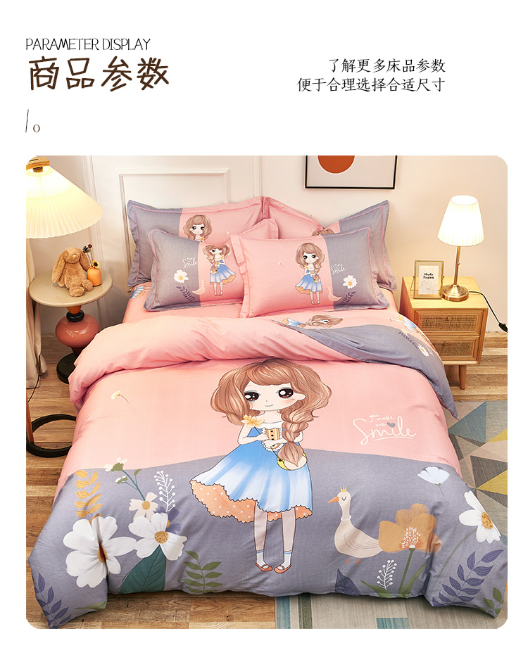 商品名称:雲归梦2021全棉大版生态磨毛四件套卡通花型第1批 米蕾粉