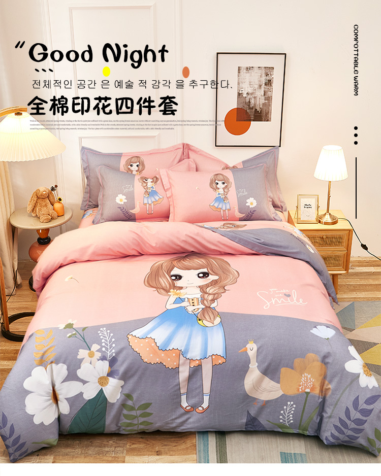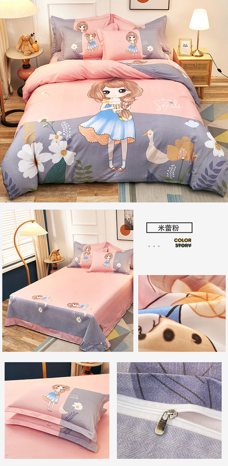 雲归梦2021全棉大版生态磨毛四件套卡通花型第1批 米蕾粉