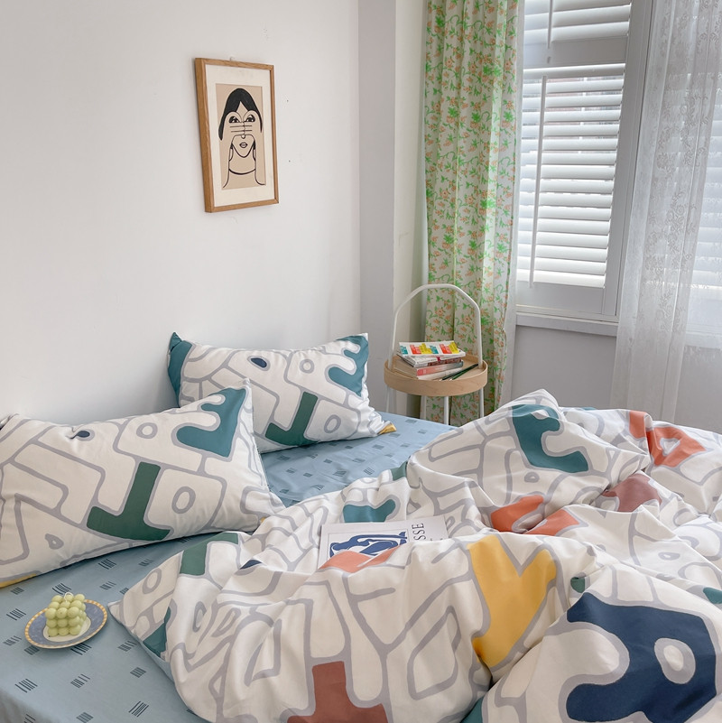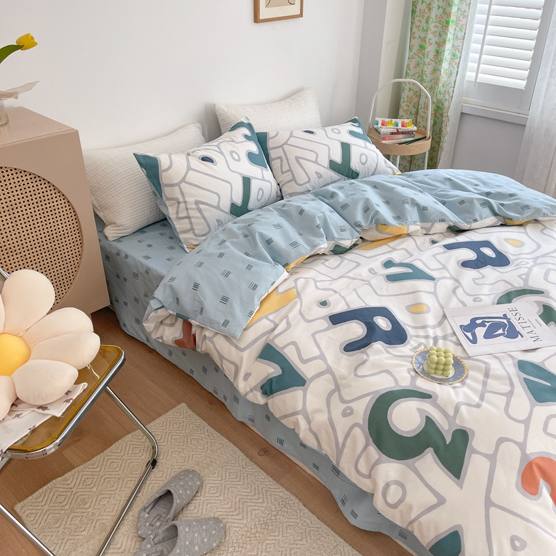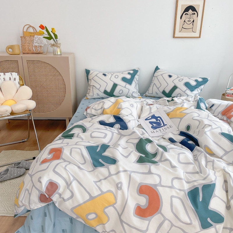 时年 2021新款40S全棉印花四件套小可爱系列 欢乐字母