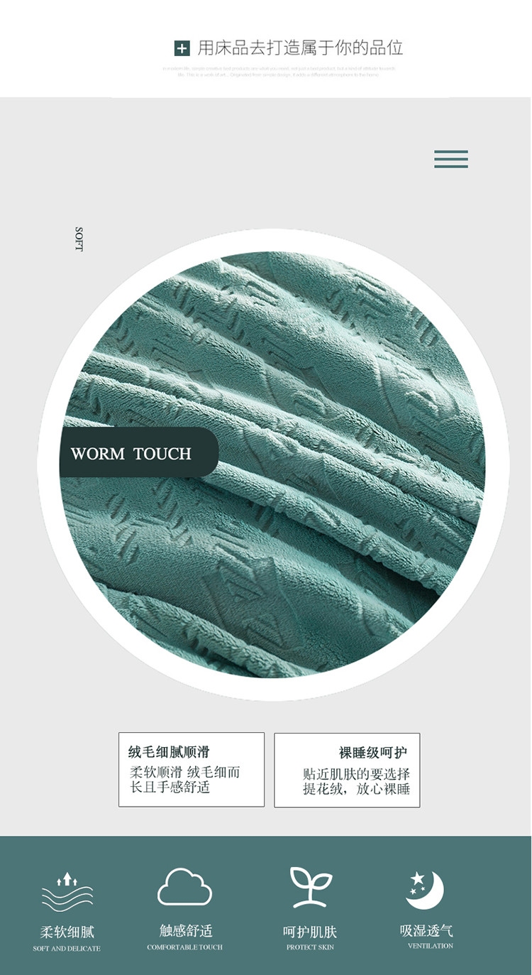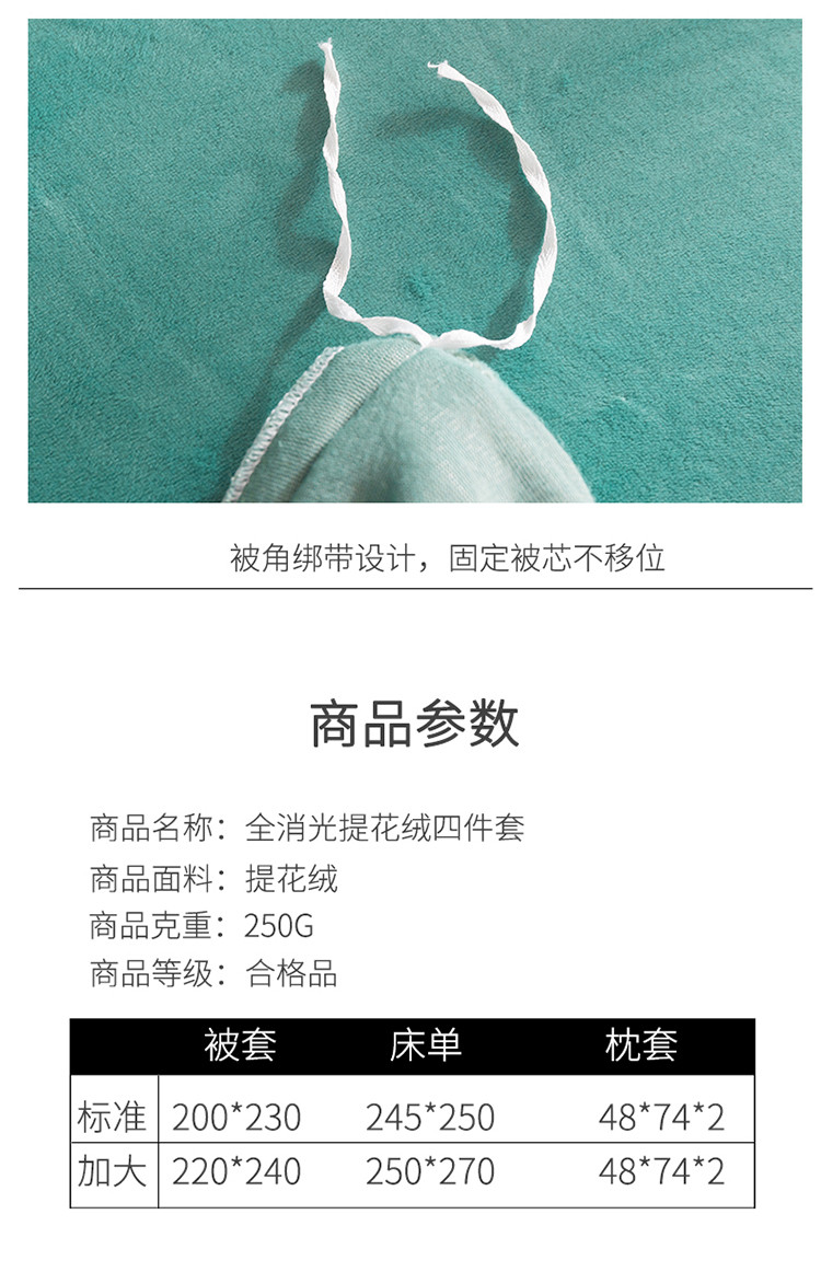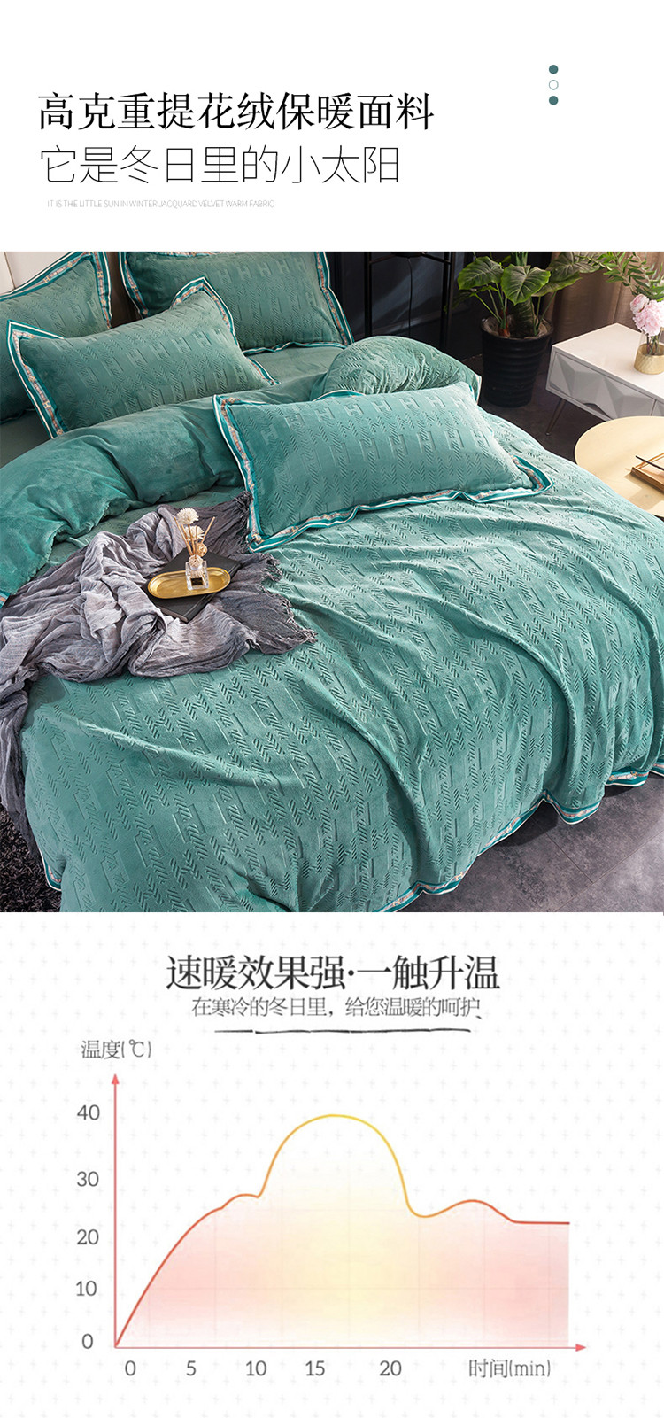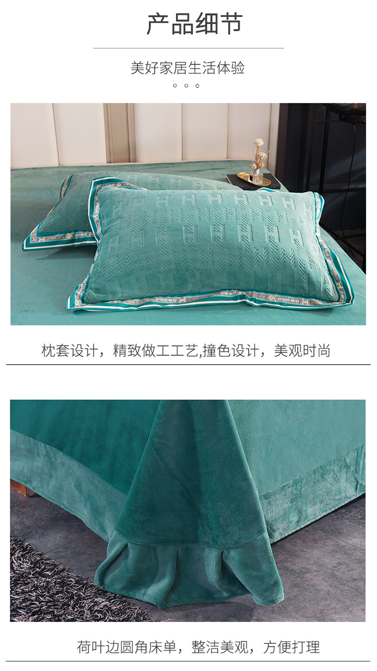 商品名称:佳梦家纺轻奢提花绒四件套牛奶绒纯色消光压花宝宝绒被套 草绿