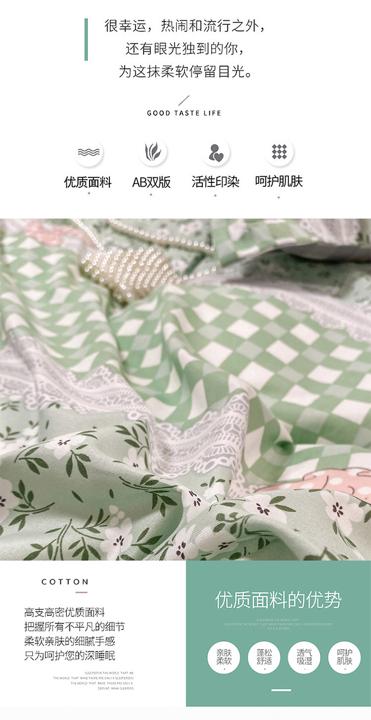 妖妖家纺 2021新款芦荟棉印花四件套 惬意生活