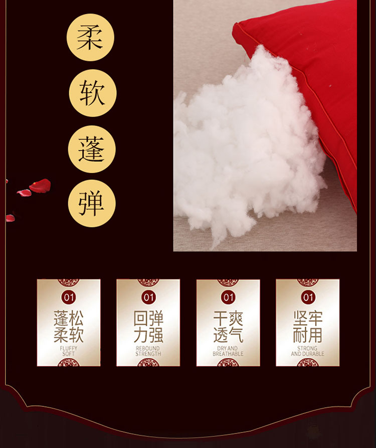 当前位置: 91家纺网 > 商品网购 > 枕头/枕芯/保健枕/颈椎枕 > 普通枕芯 > 枕之坊 2021新款大红婚庆羽丝枕b48×74cm 花嫁喜事