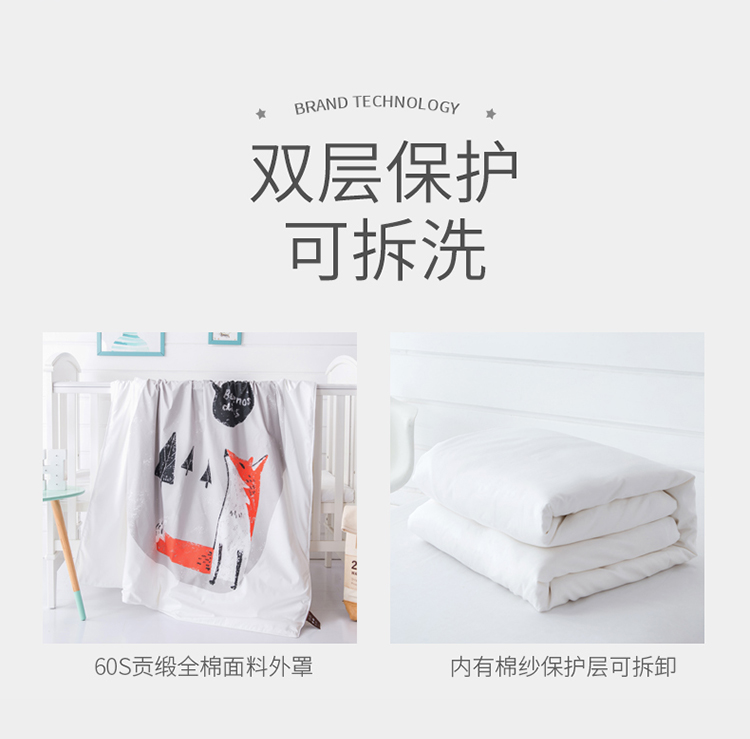 商品名称:香夫 新款60S加密贡缎儿童大版花可拆洗纯蚕丝被 狐狸的春天