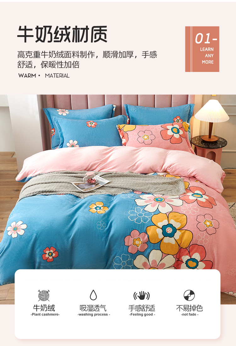 商品名称:昊川 2021新款牛奶绒印花四件套 花语仙踪
