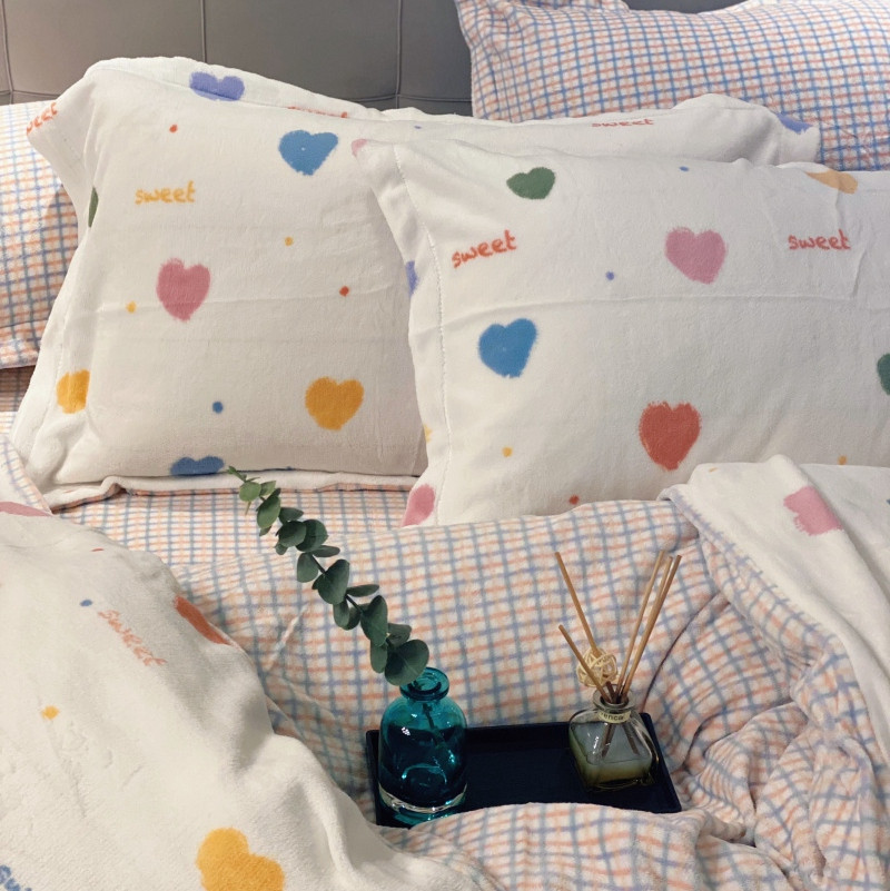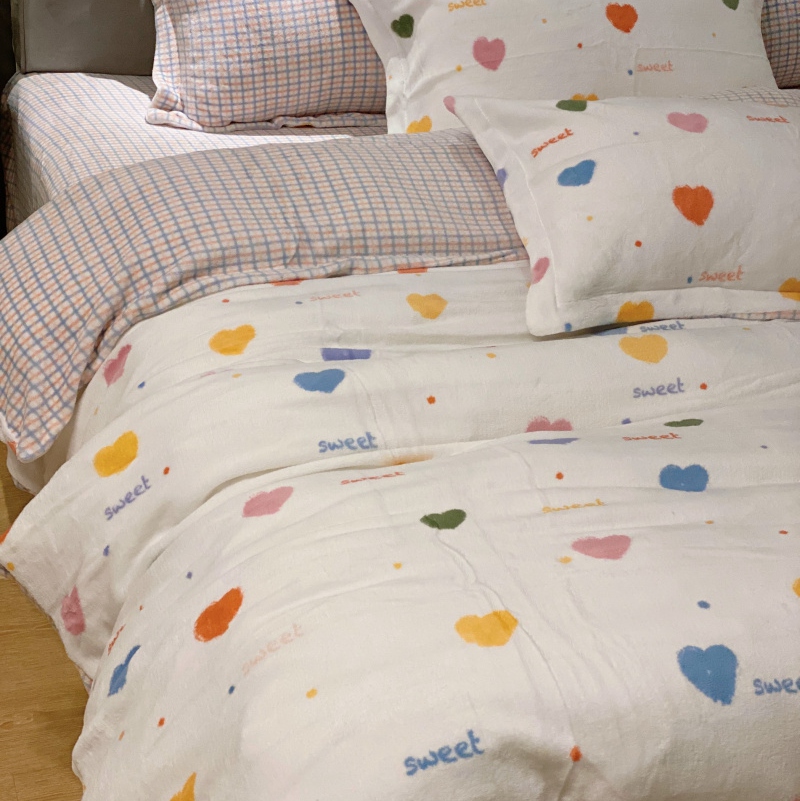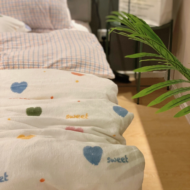 棉生活 2021新款小清新牛奶绒四件套 心岛