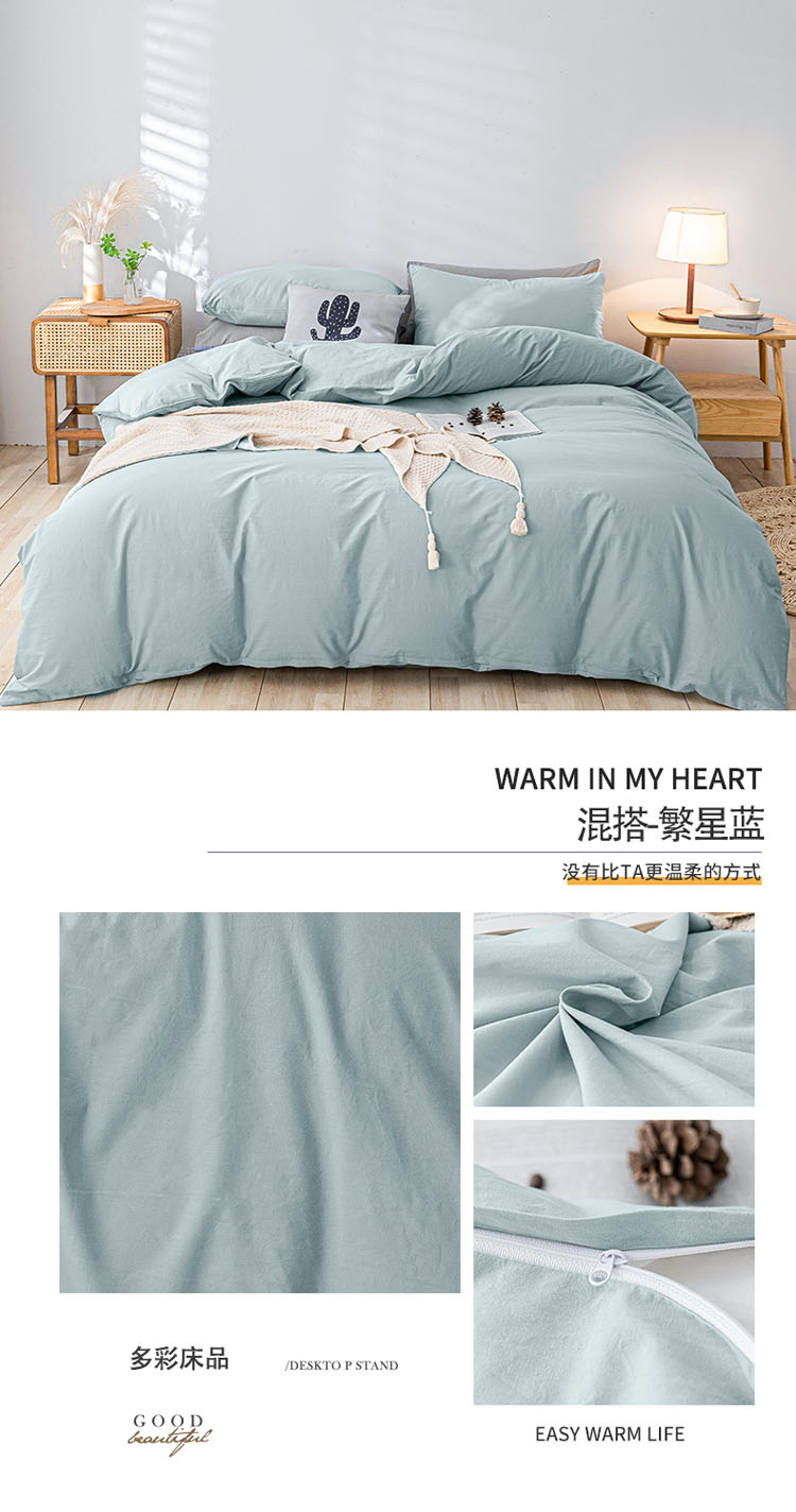 商品名称:蓝巢家纺 2021新款全棉色织水洗棉单被套 混搭-繁星蓝