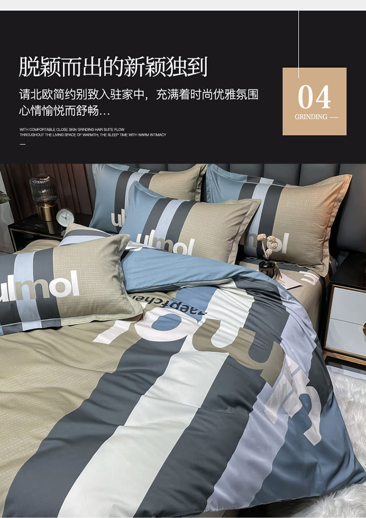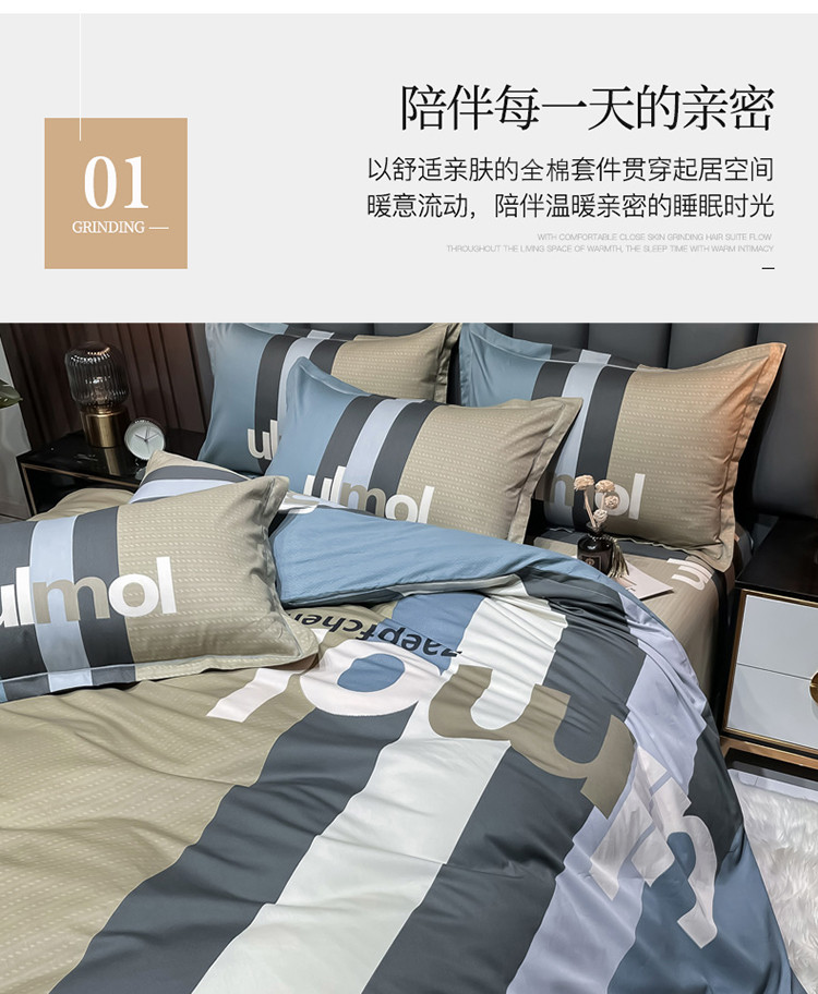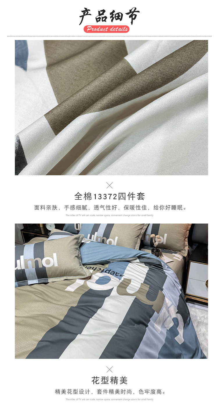 当前位置: 91家纺网 > 商品网购 > 床品套件 > 四件套 > 全棉普通四件套 > 金爱家 2023新款全棉13372简约条格四件套 苏黎世咖