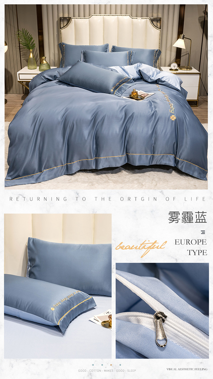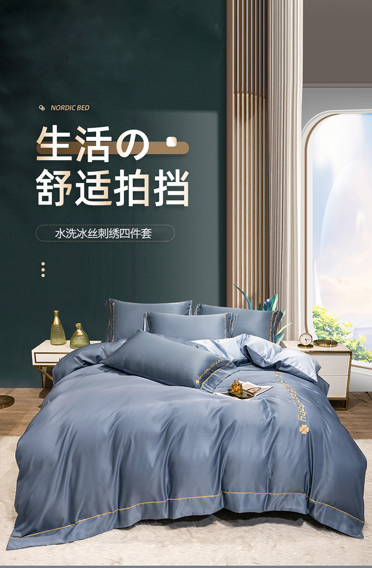 (总)骏腾 2022新款纯色水洗真丝刺绣四件套,羽毛-湖蓝,羽毛-米白,羽毛-墨绿,羽毛-深蓝,羽毛-天蓝,羽毛-银灰