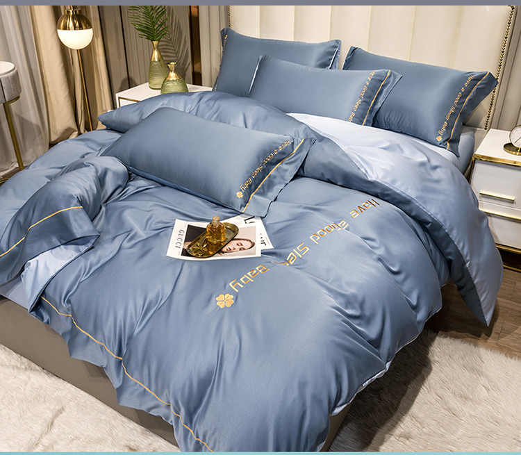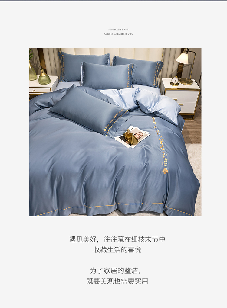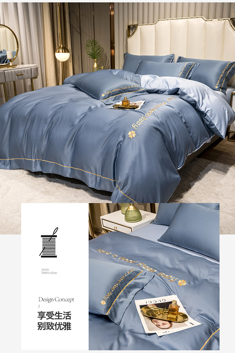 (总)骏腾 2022简爱水洗天丝绣花四件套水洗真丝三件套,宝蓝,湖蓝,酒红,墨绿,深灰,银灰,玉色