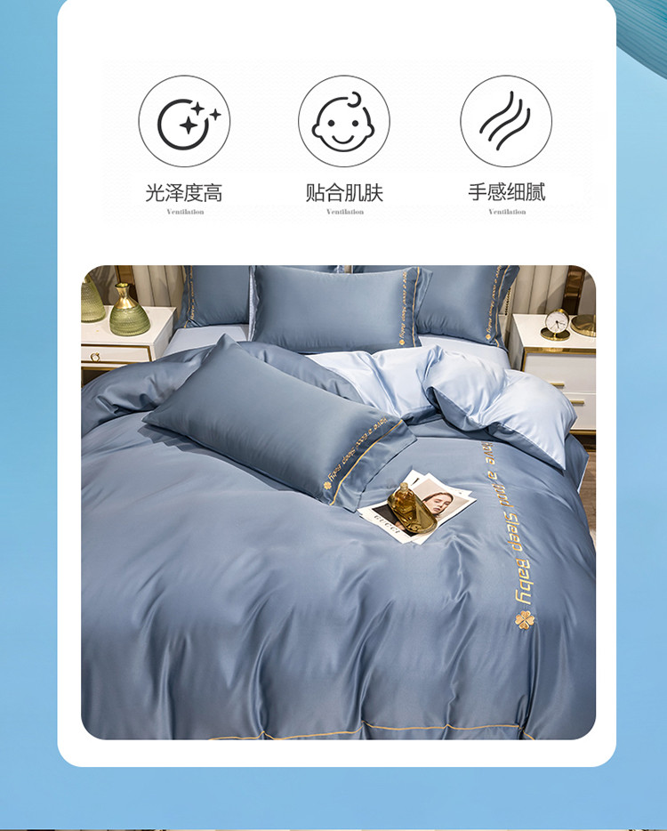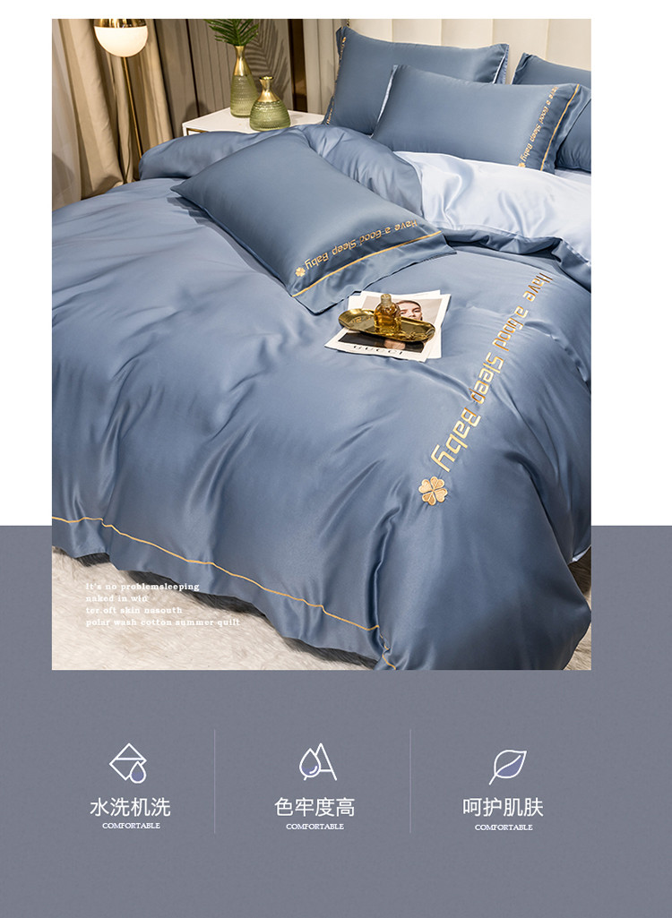 骏腾2023新款水洗冰丝刺绣四件套真丝三件套-梦精灵 雾霾蓝