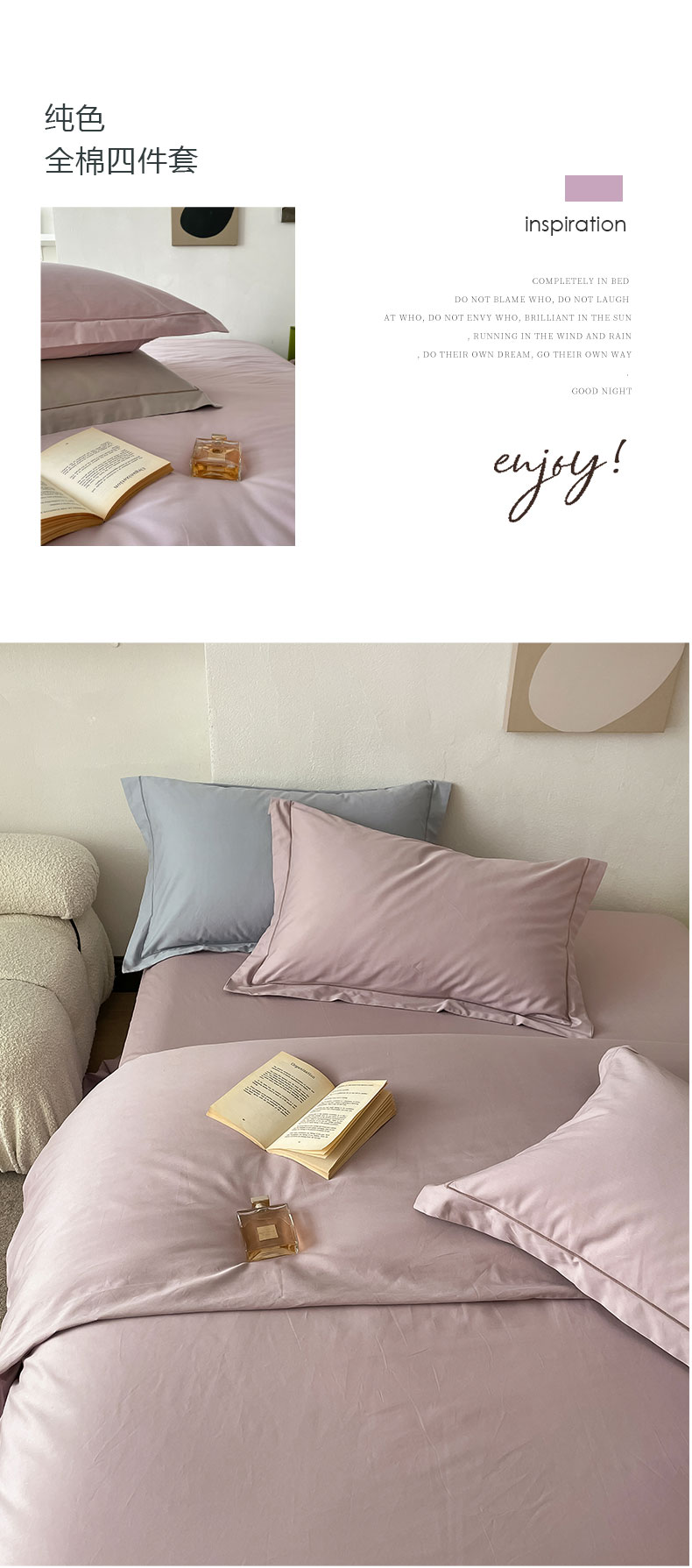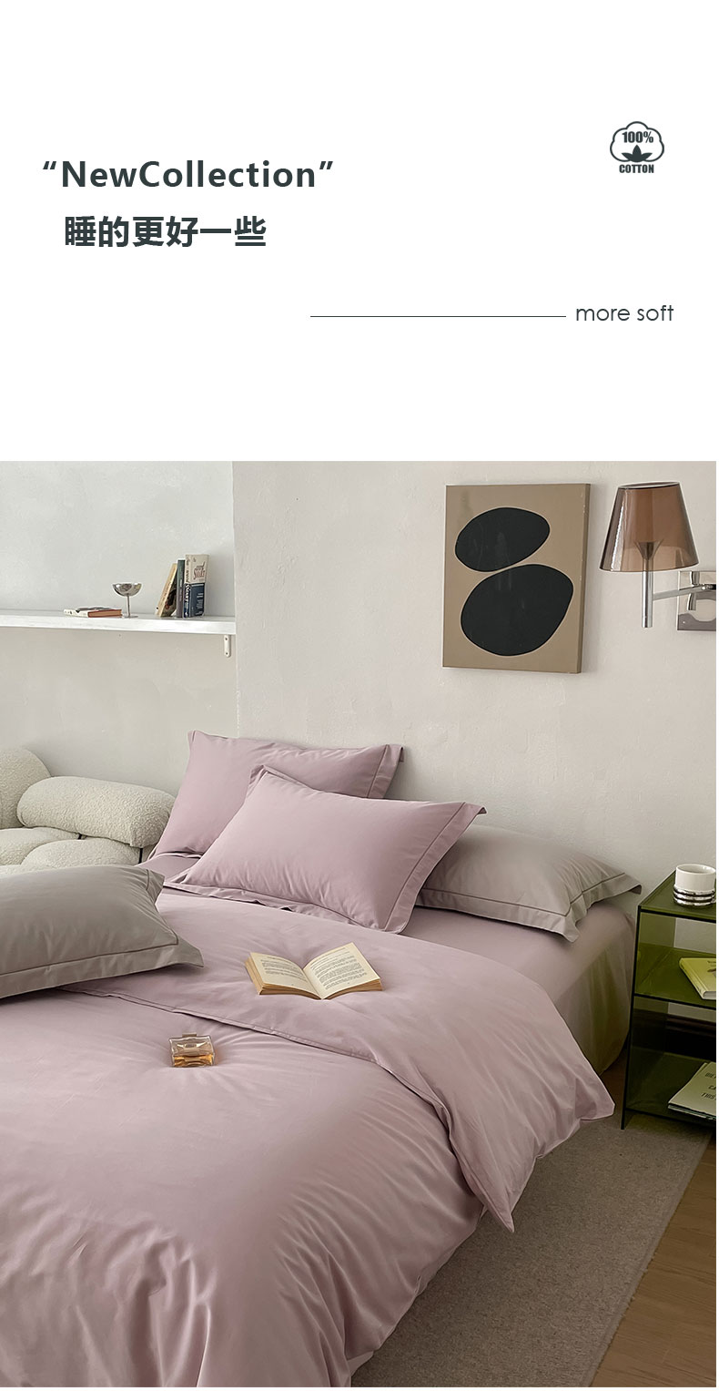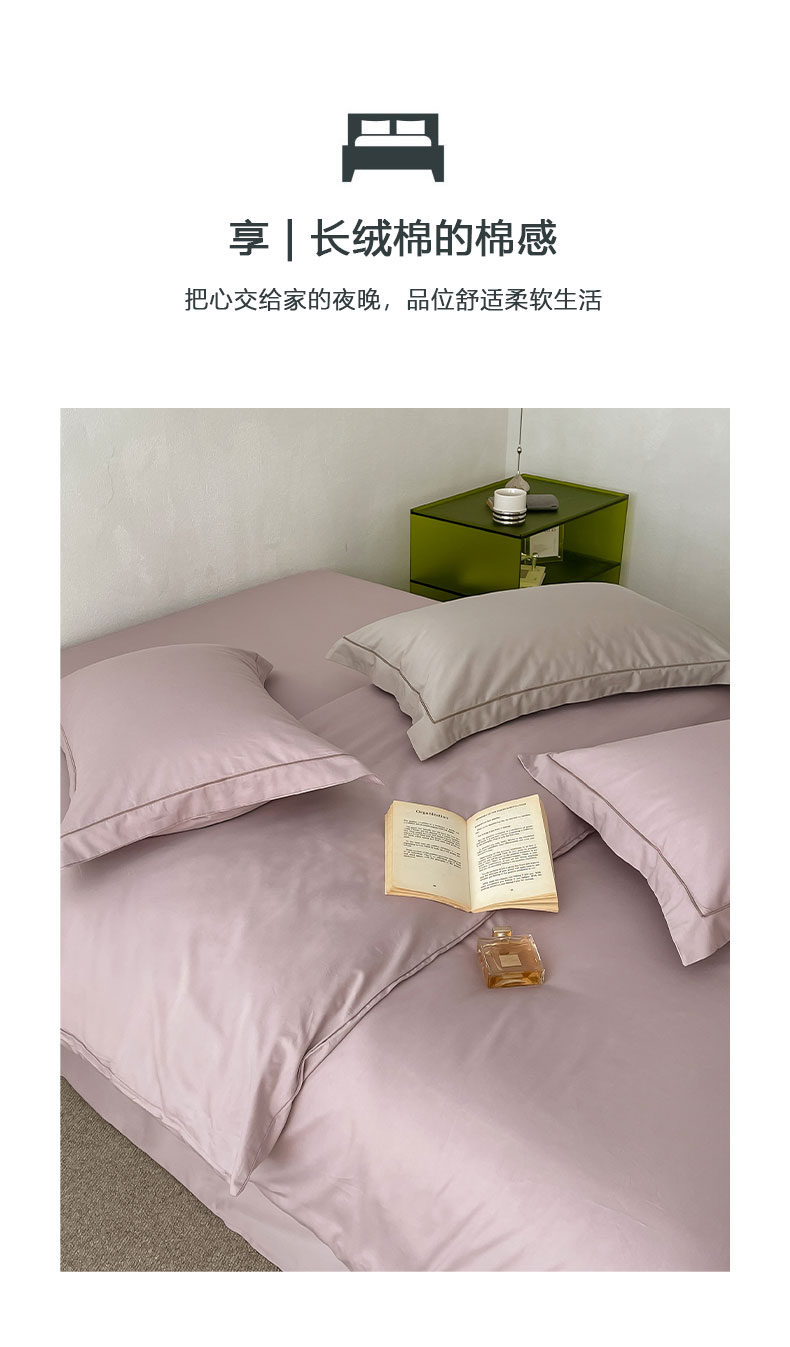 当前位置: 91家纺网 > 商品网购 > 床品套件 > 四件套 > 长绒棉四件套 > 蕊姿超柔水洗春夏新款50s双股新疆长绒棉纯色四件套淡紫色
