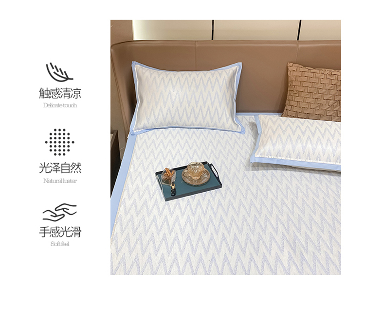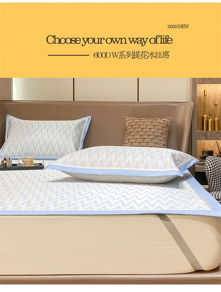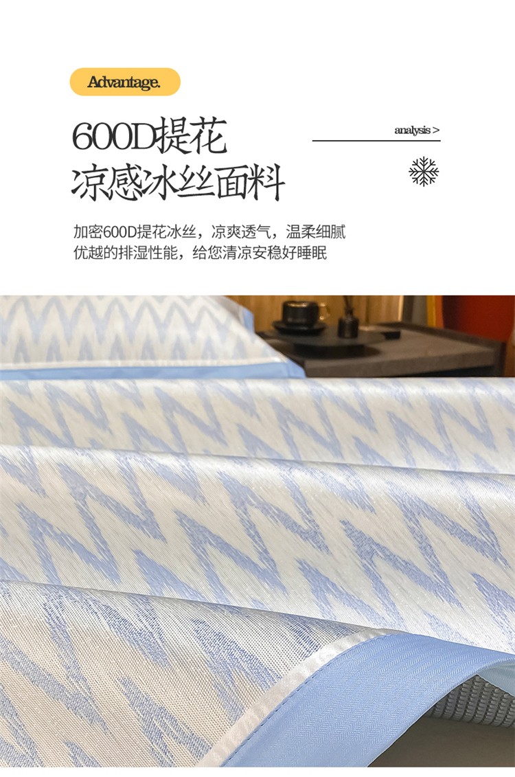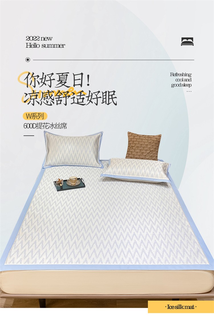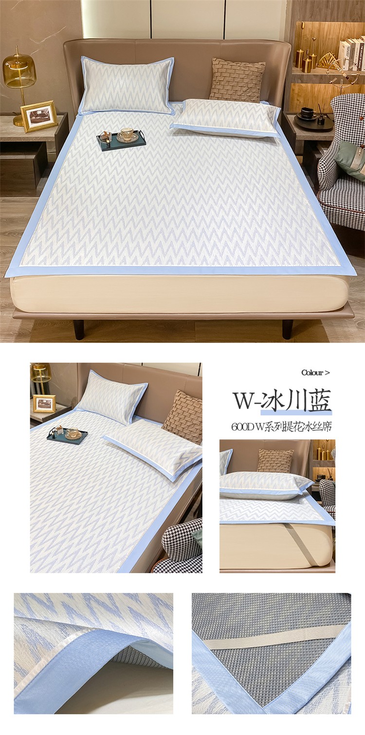 商品名称:懒猫 2022新款600D提花冰丝席 W-冰川蓝