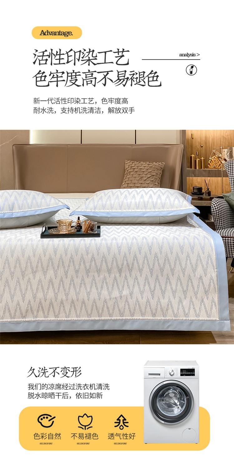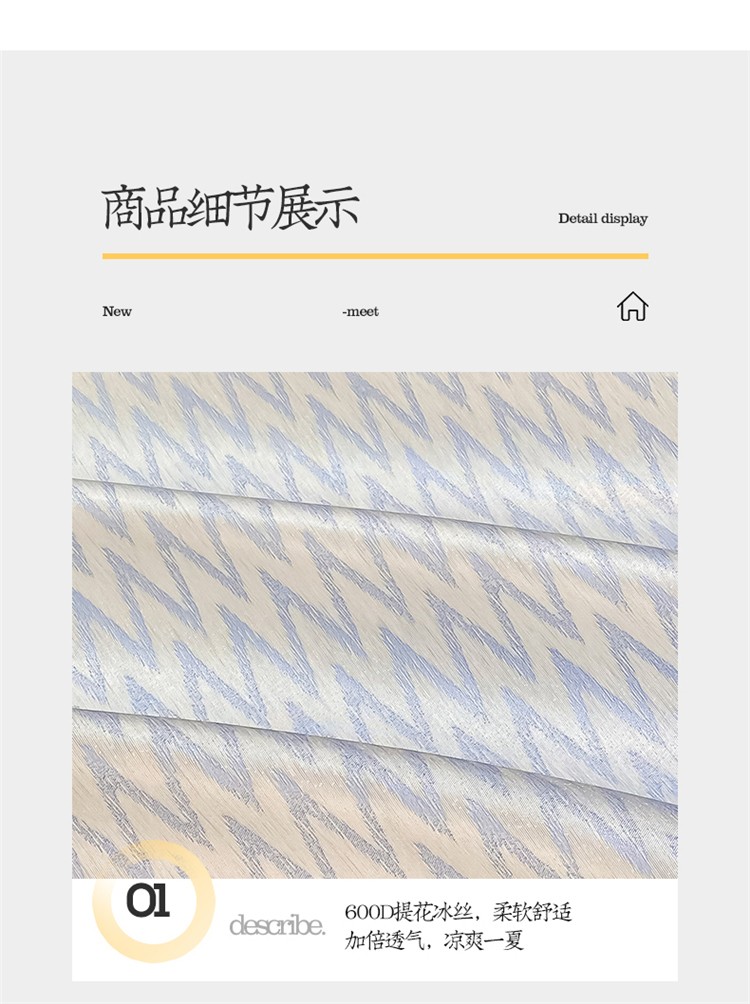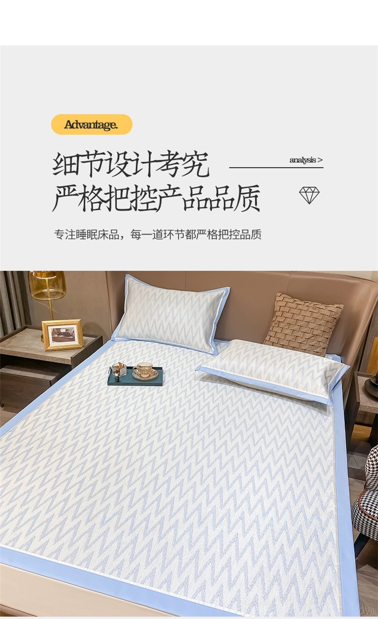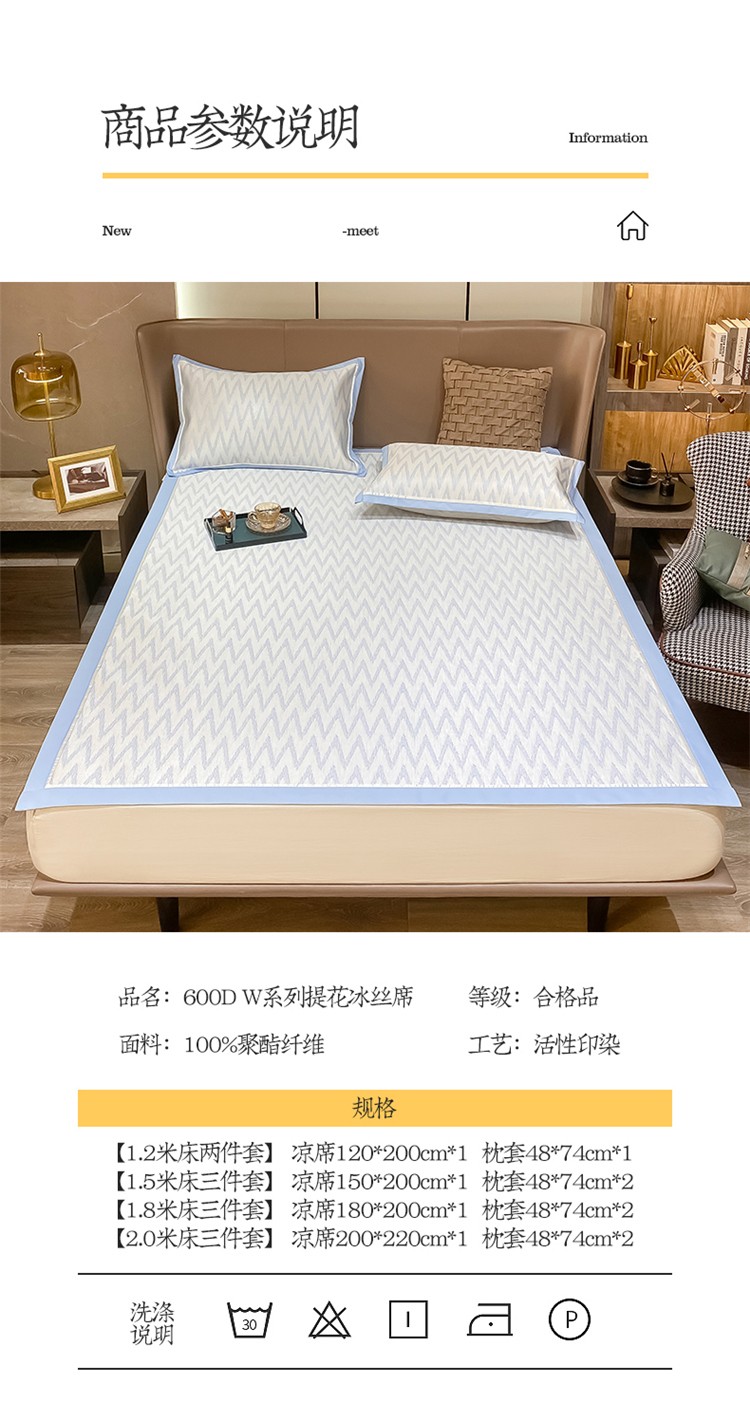 商品名称:懒猫 2022新款600D提花冰丝席 W-冰川蓝