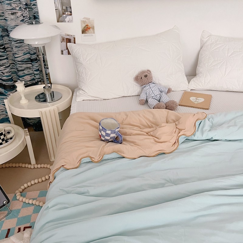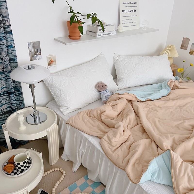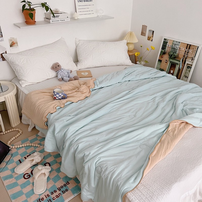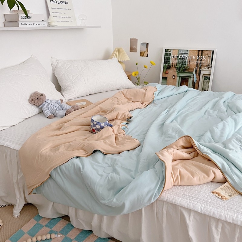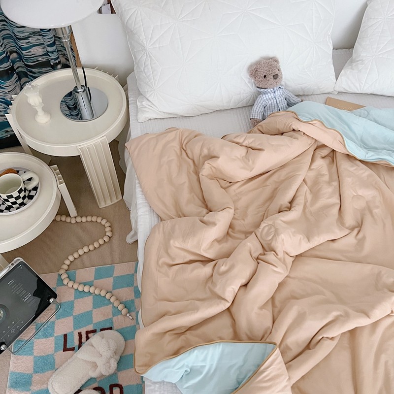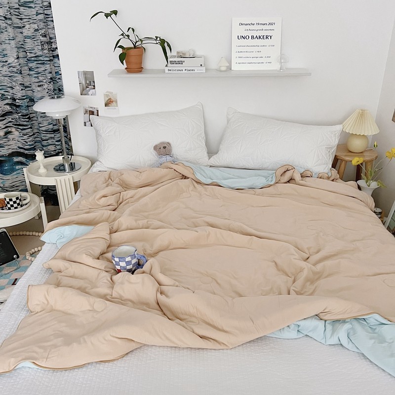 星期八 2022新款马卡龙针织棉大豆夏被 卡其天蓝