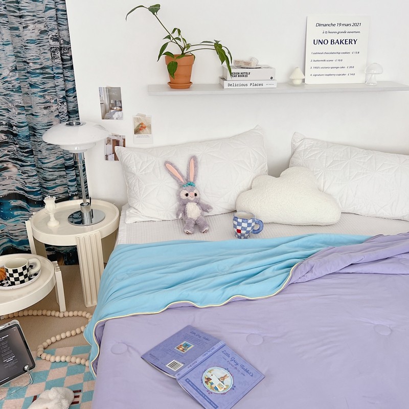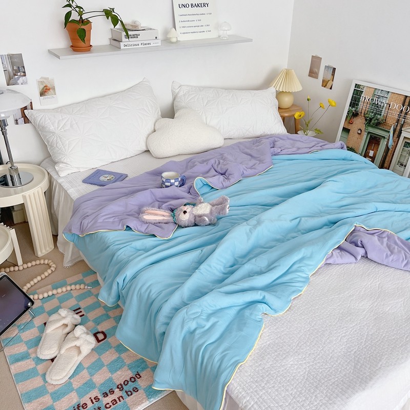 星期八 2022新款马卡龙针织棉大豆夏被 紫蓝
