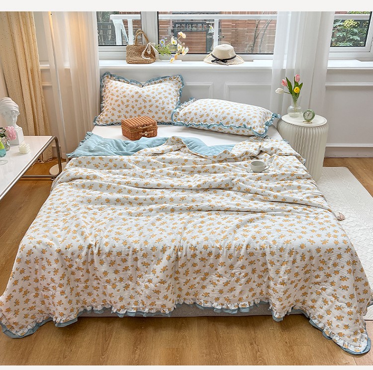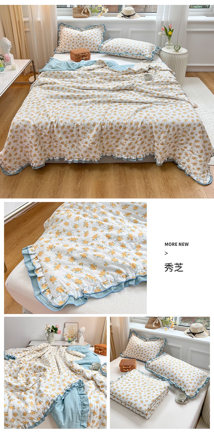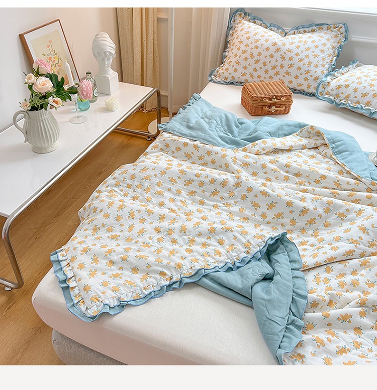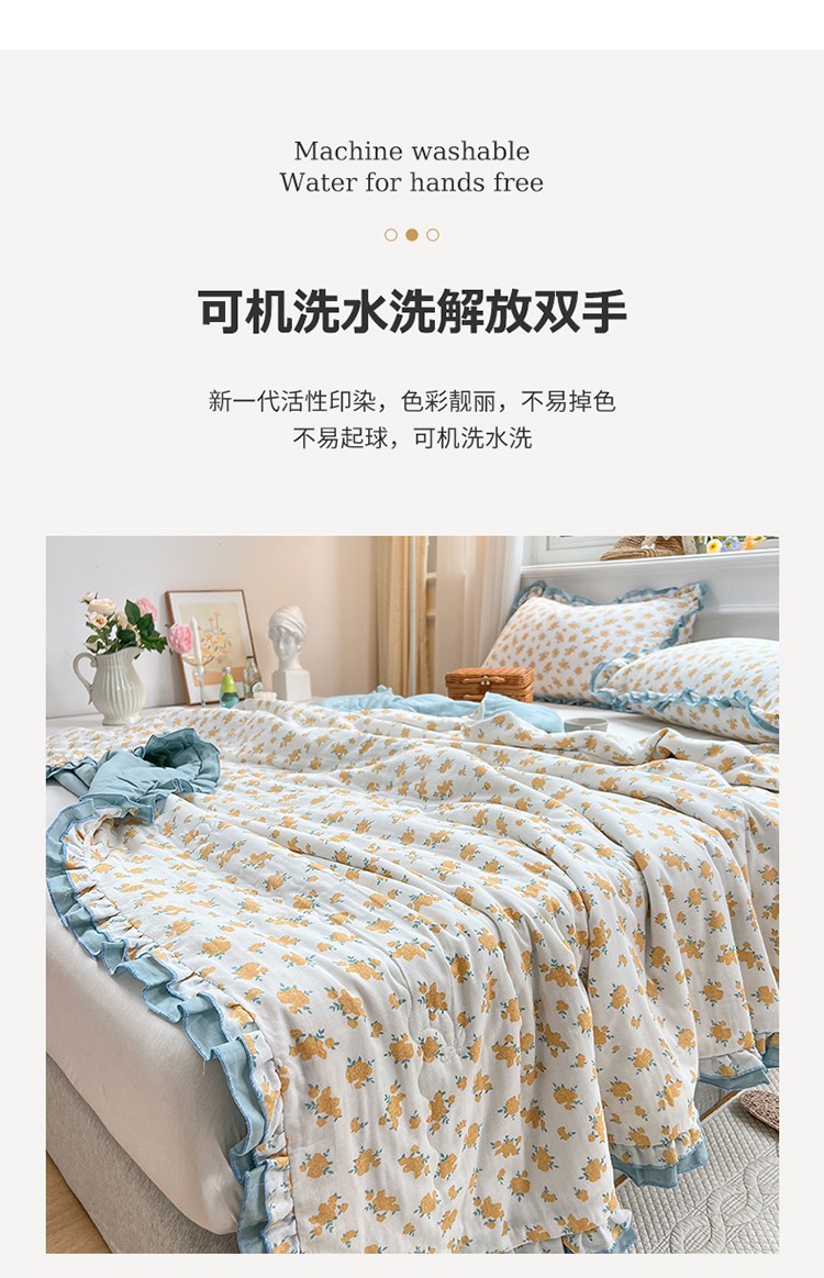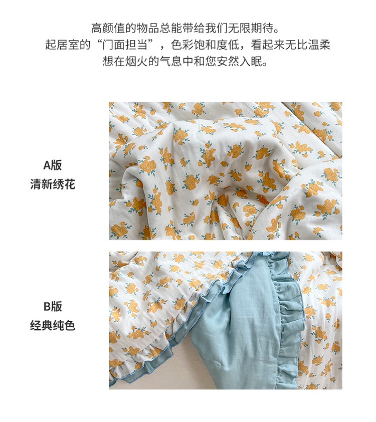 (总)有货 2023新款小清新花边韩版水洗棉麻豆豆夏被简约复古风,枫情,格格,绿野,绿意,南风,暖心,森林,盛开,太空,微笑,向阳花,小鹿,枝丫
