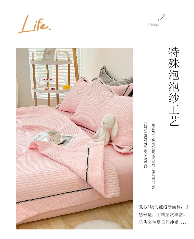 当前位置: 91家纺网 > 商品网购 > 床品套件 > 四件套 > 夏被四件套 > 乐卧2026雅韵蕾丝花边手工花卉夏被四件套简版 樱花粉-简版