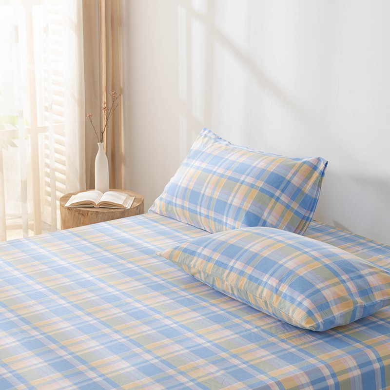久典 2022新款色织全棉水洗棉单品床单 韶华蓝