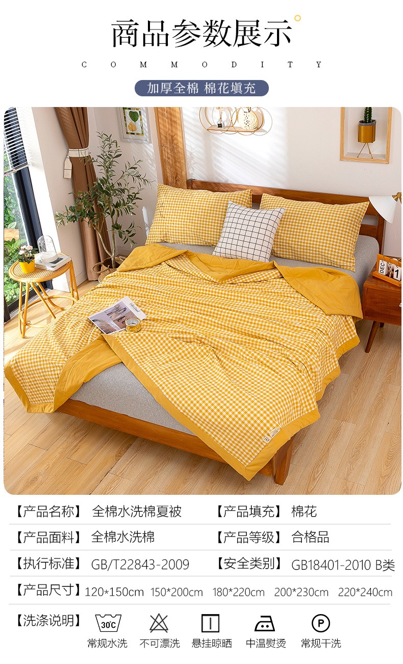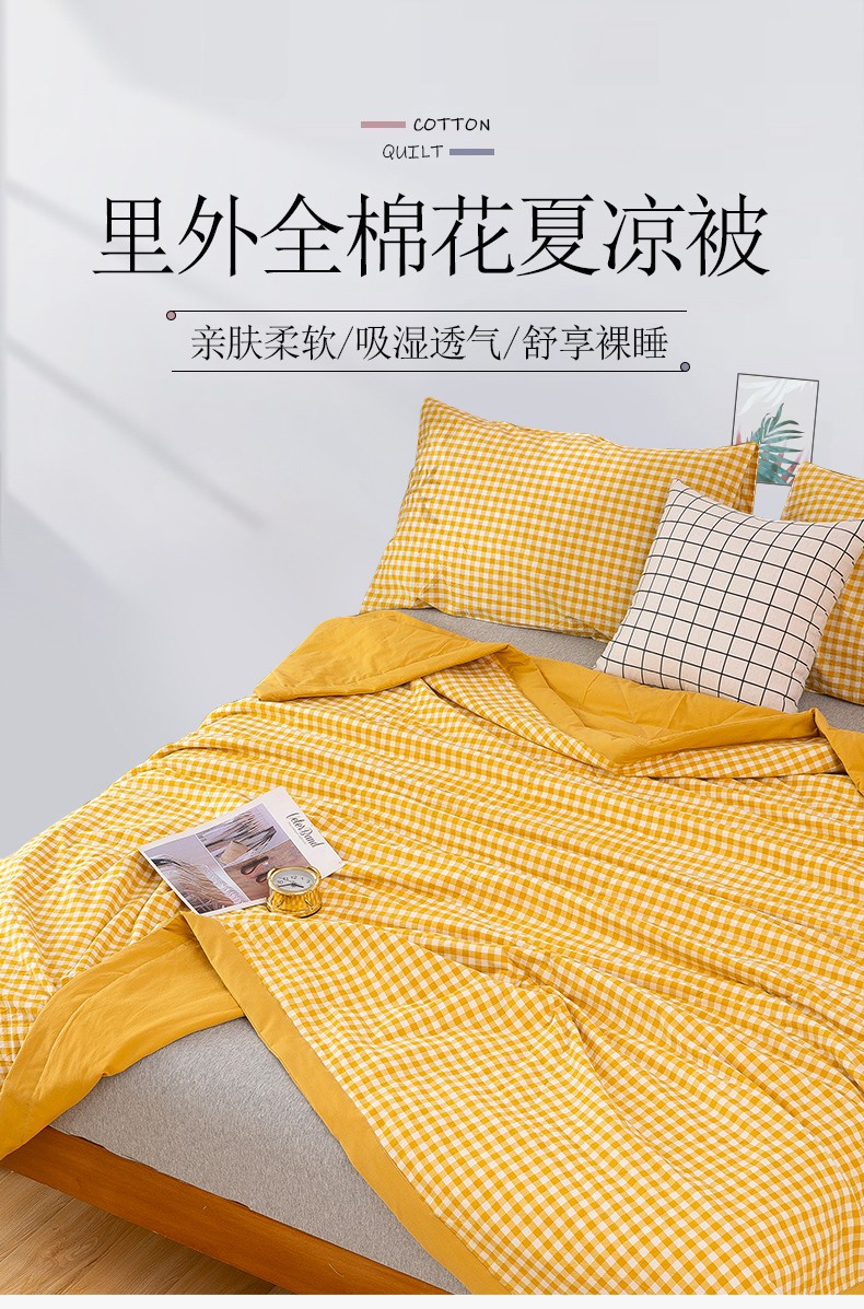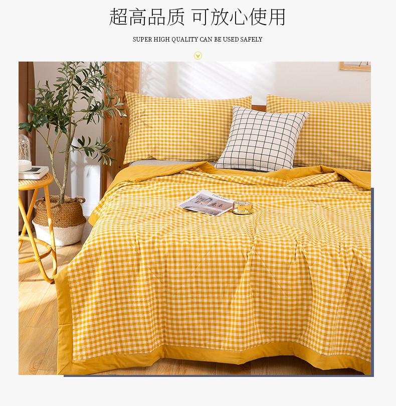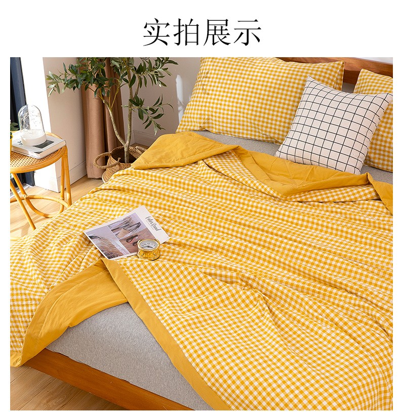 商品名称:天瑜 2024新款棉花芯色织水洗棉夏被 姜黄小格
