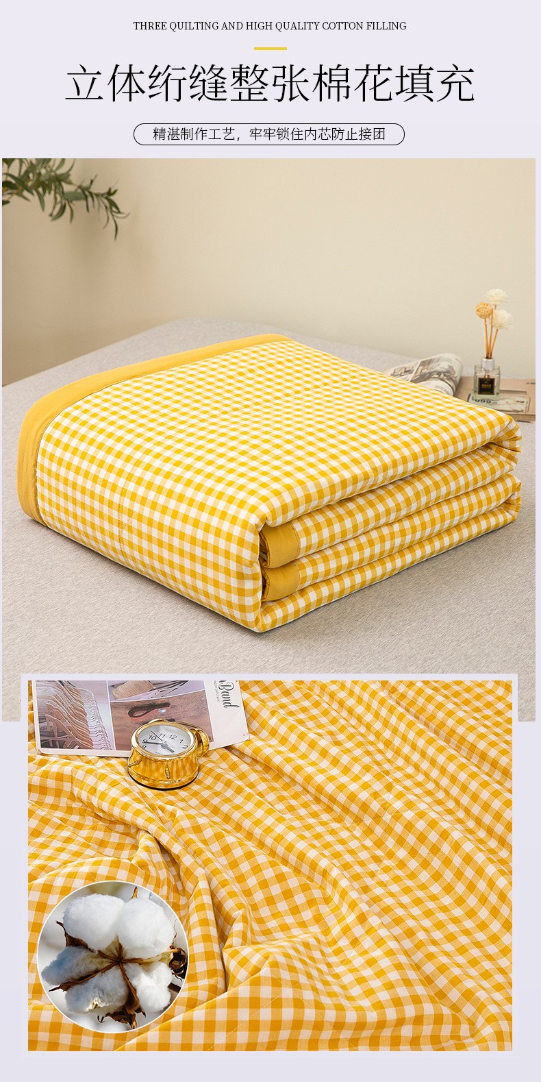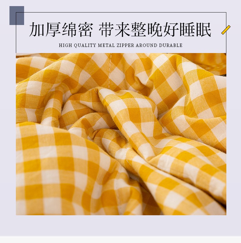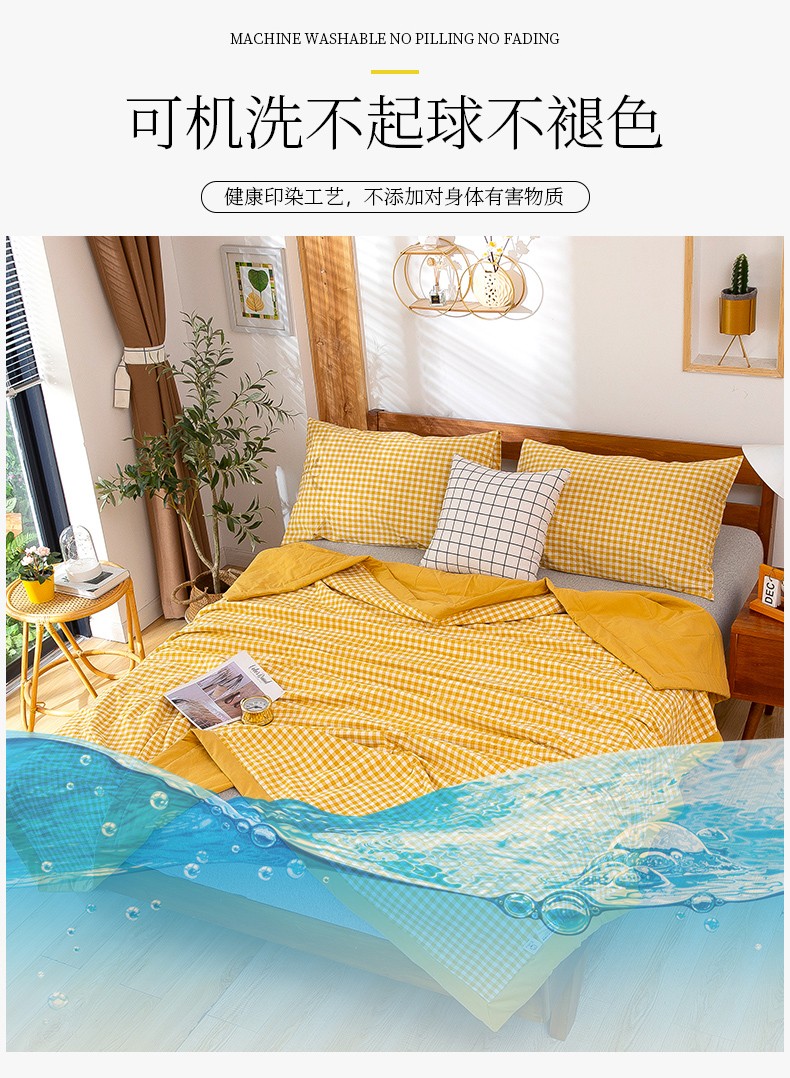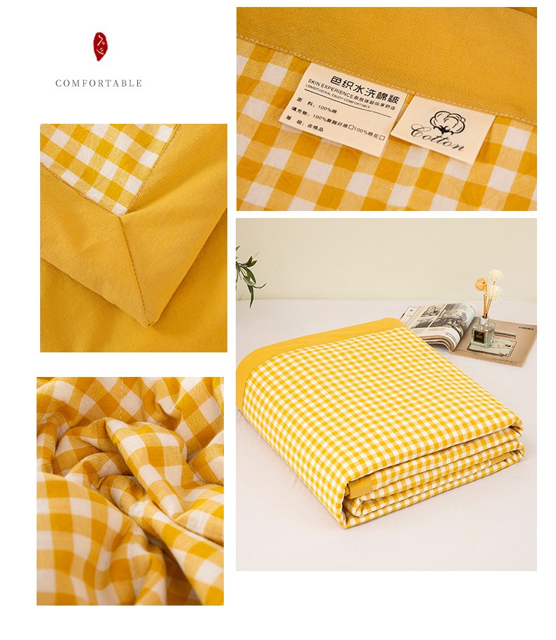 商品名称:天瑜 2024新款棉花芯色织水洗棉夏被 姜黄小格