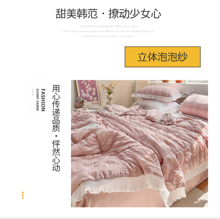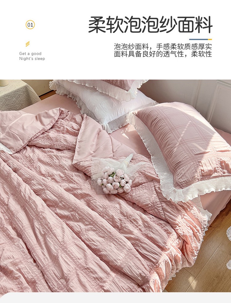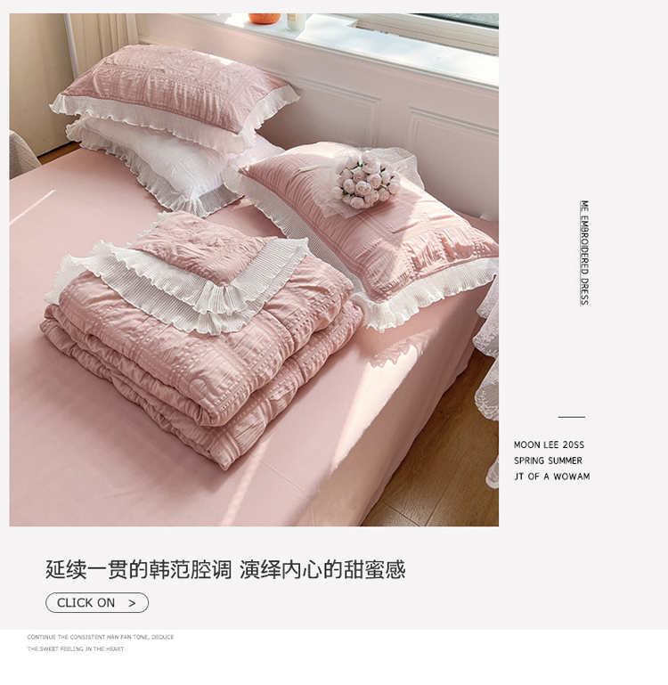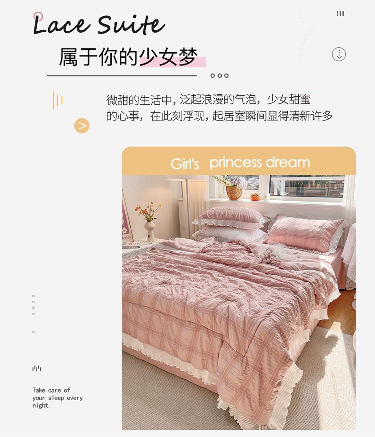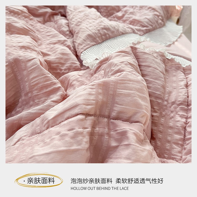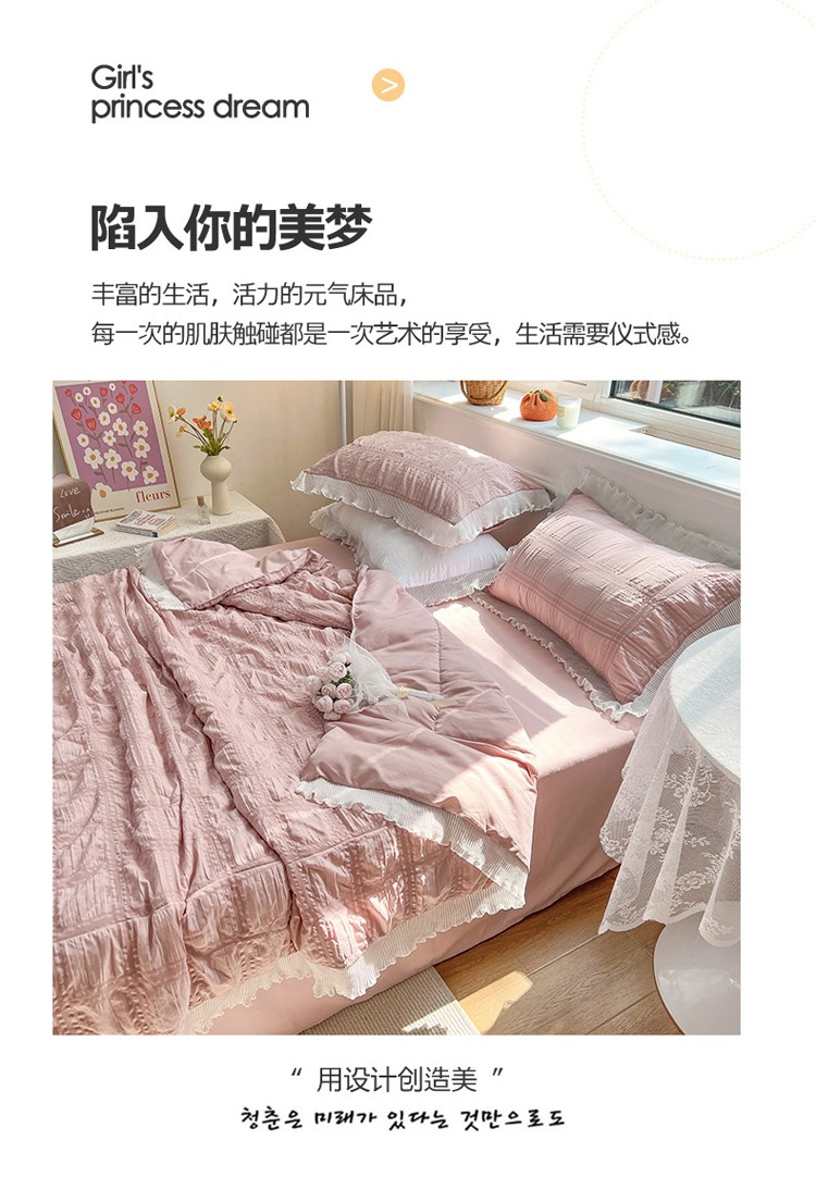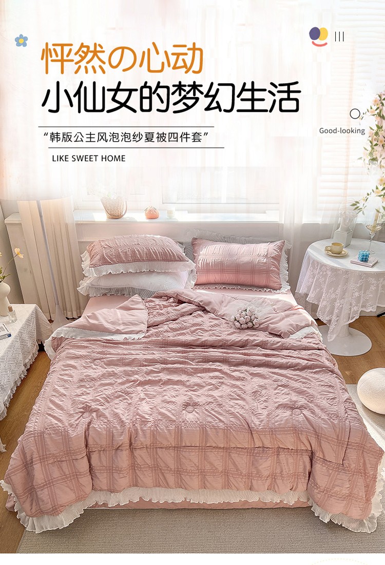 当前位置: 91家纺网 > 商品网购 > 床品套件 > 四件套 > 夏被四件套 > 寐居 2022新款韩版公主风泡泡纱夏被四件套 泡泡纱-梦幻豆沙