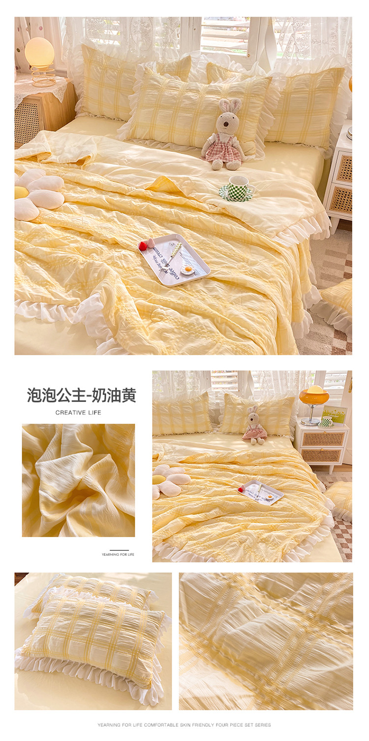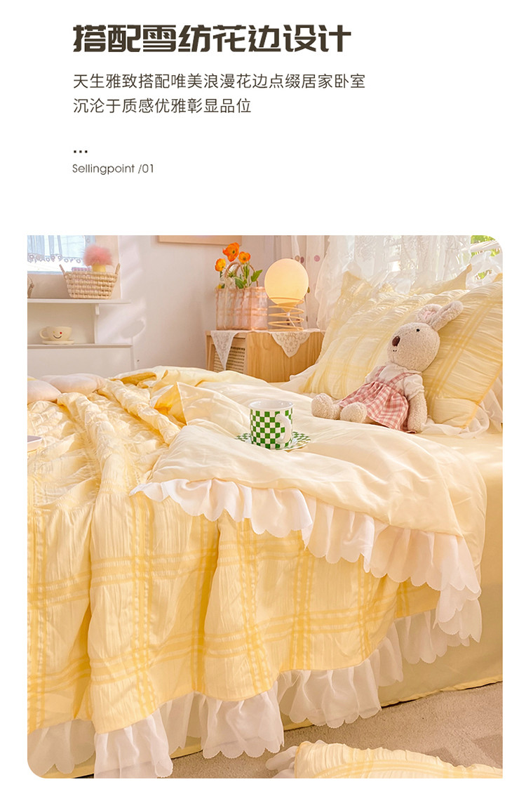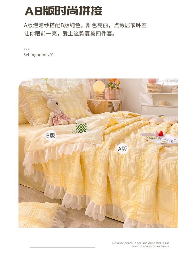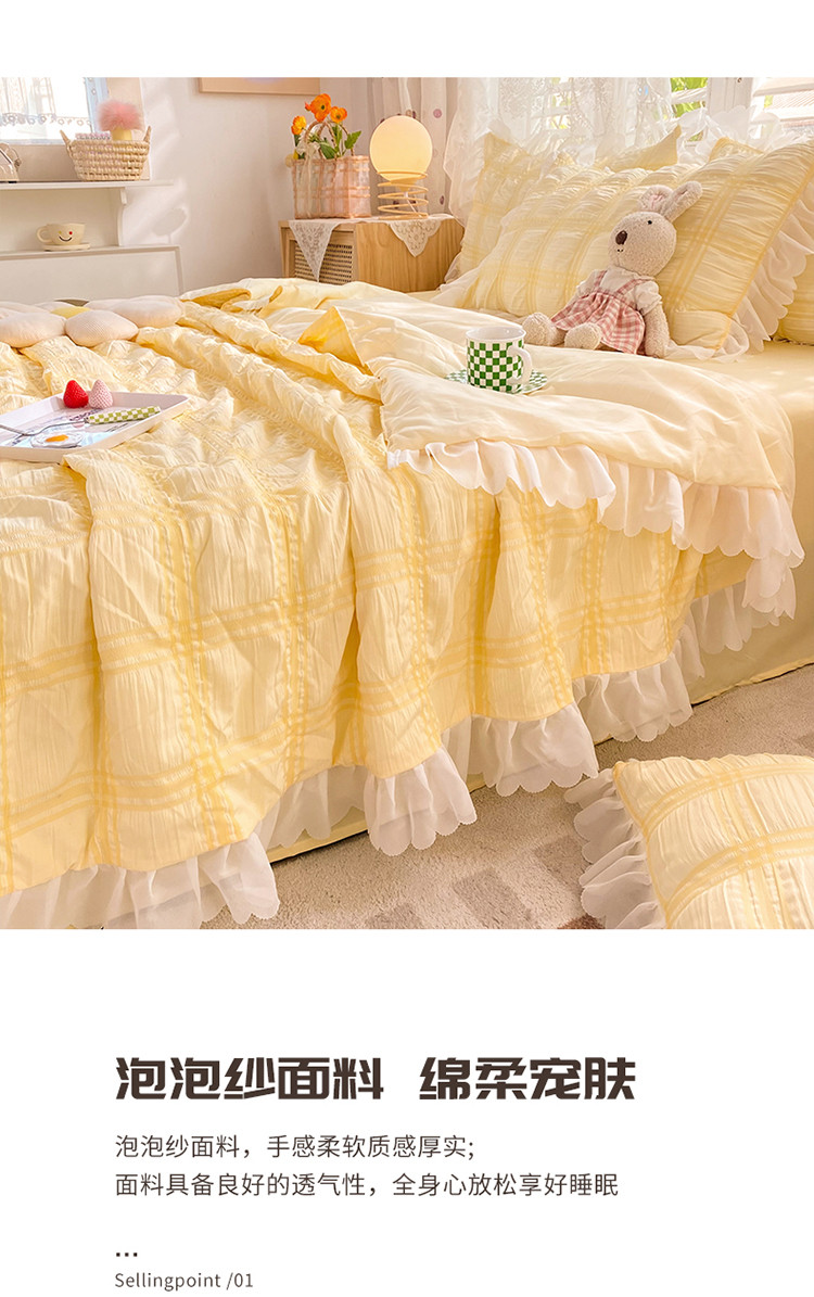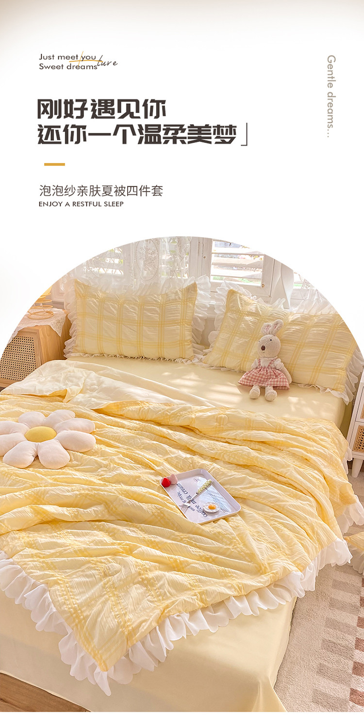 商品名称:梦之岛 2022新款泡泡亲肤公主风夏被四件套 奶油黄