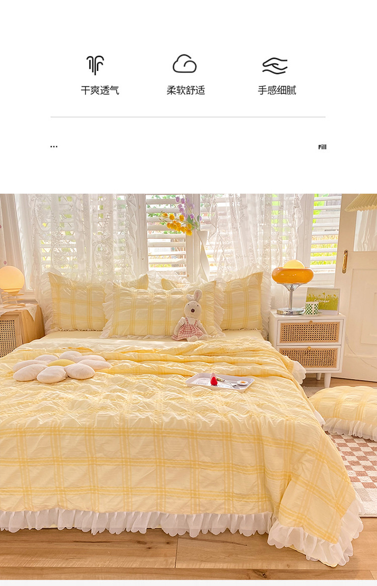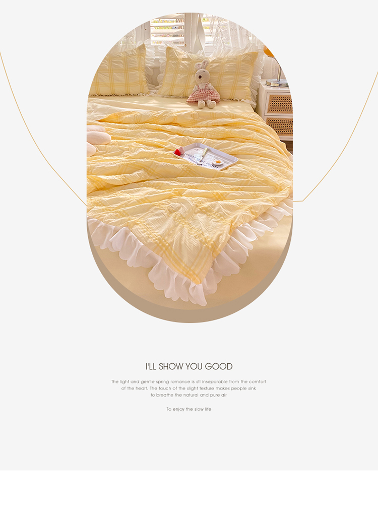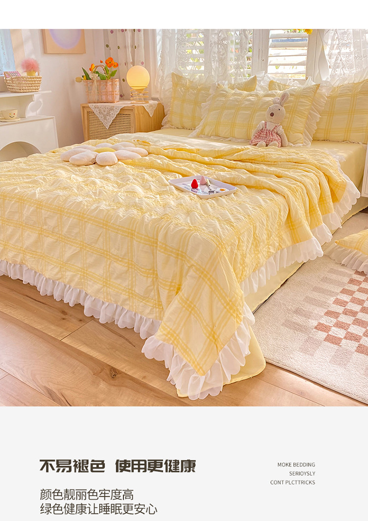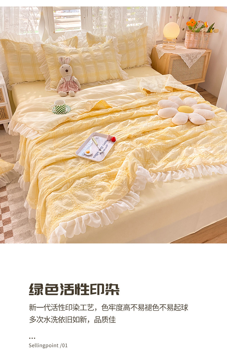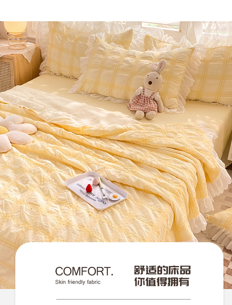 商品名称:梦之岛 2022新款泡泡亲肤公主风夏被四件套 奶油黄