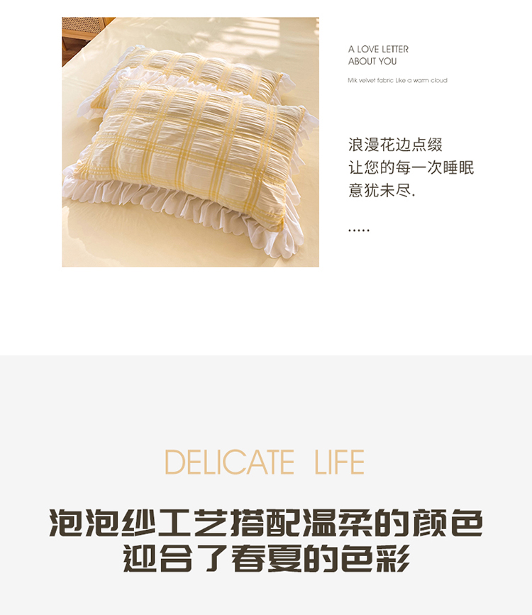 (总)梦之岛 2022新款泡泡亲肤公主风夏被四件套,淡黄绿,蜜桃粉,奶油黄,浅水绿,天空蓝