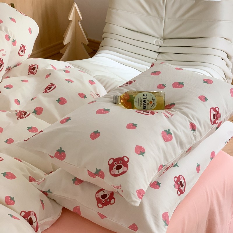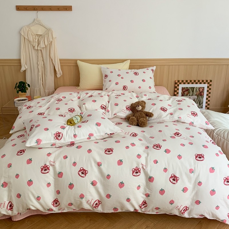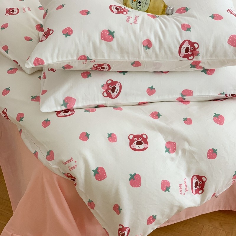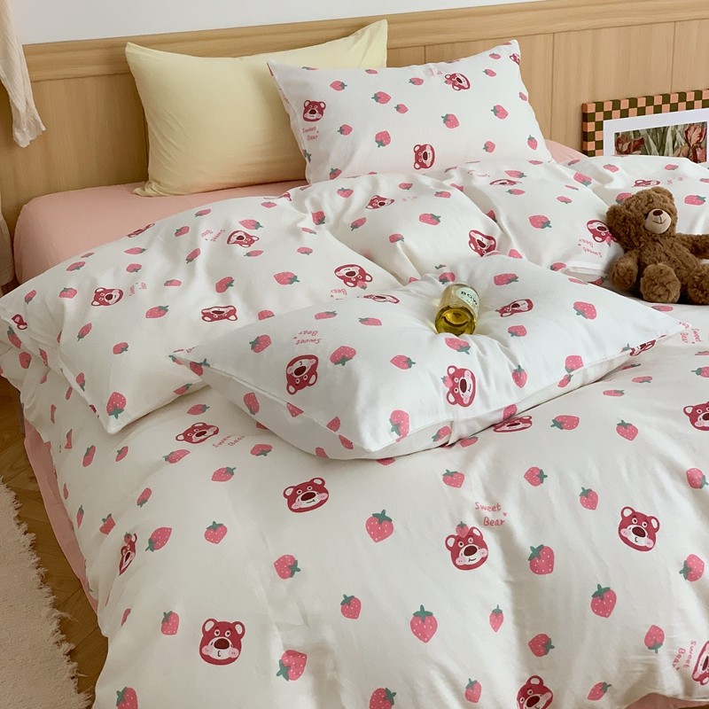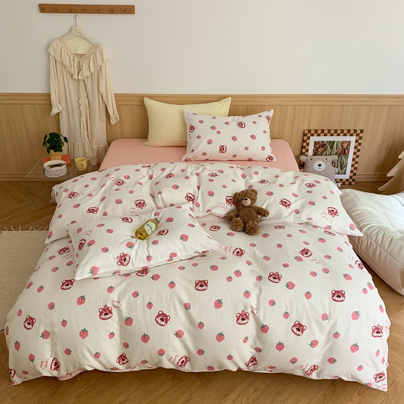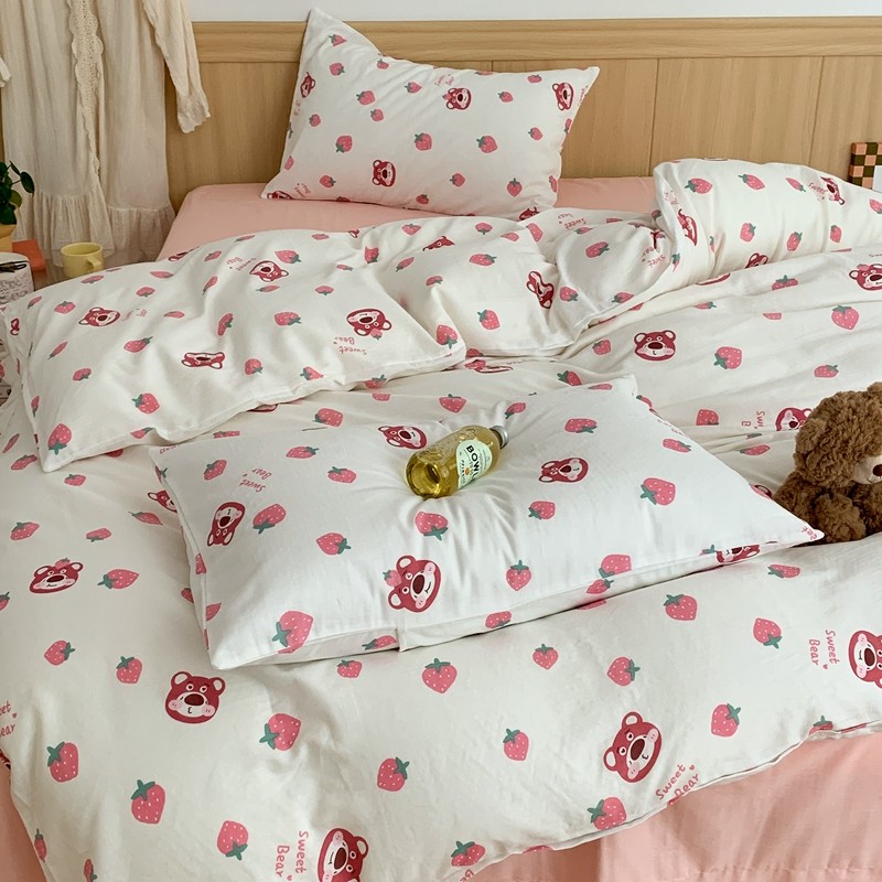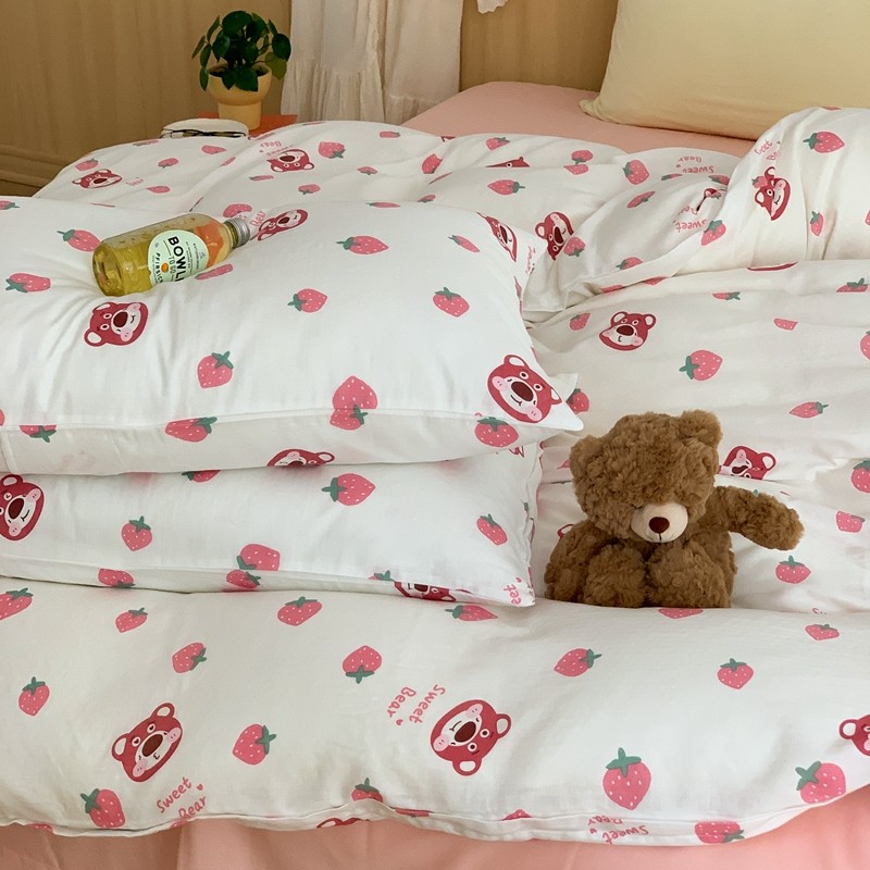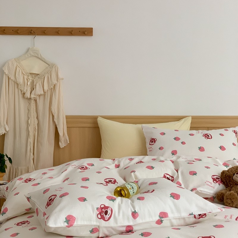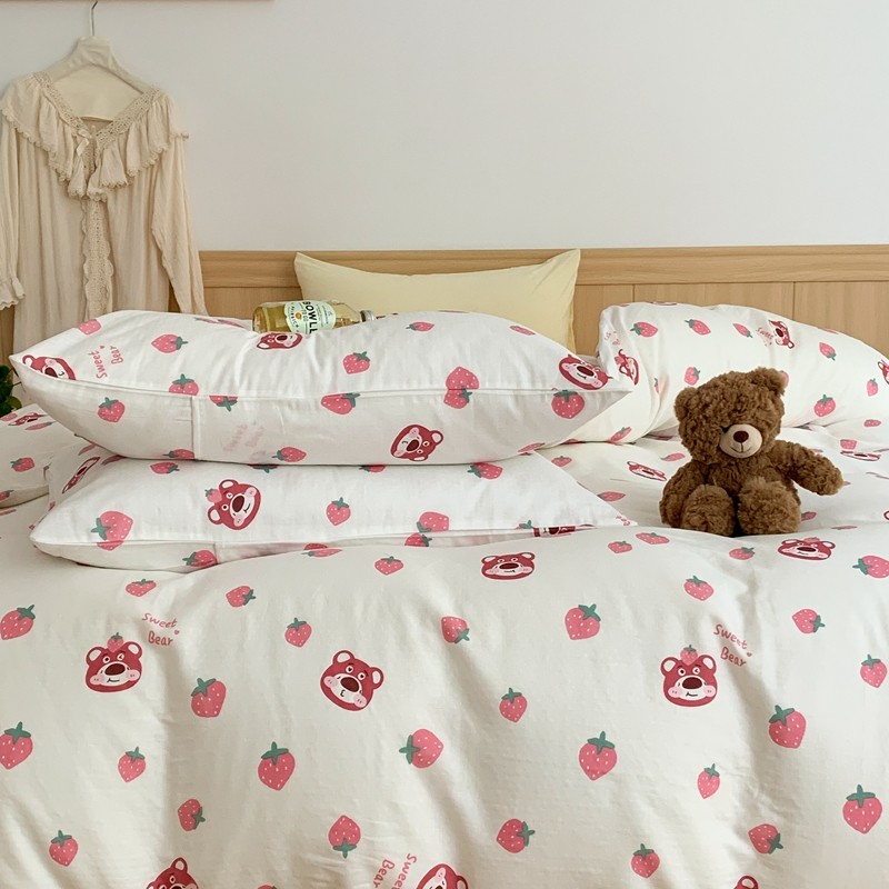 商品名称:金丝鸟 2022新款全棉双层纱四件套 草莓憨憨