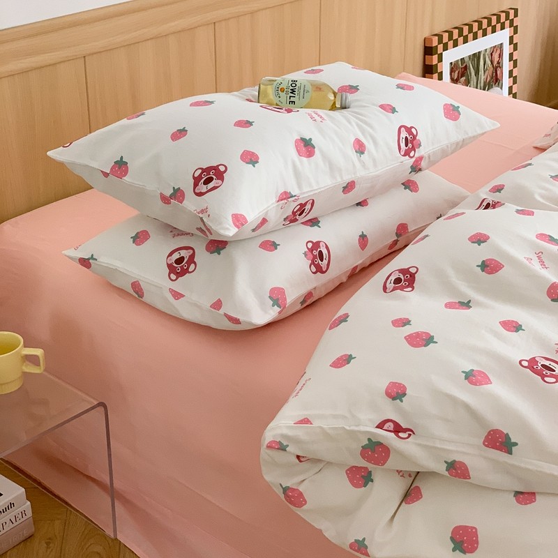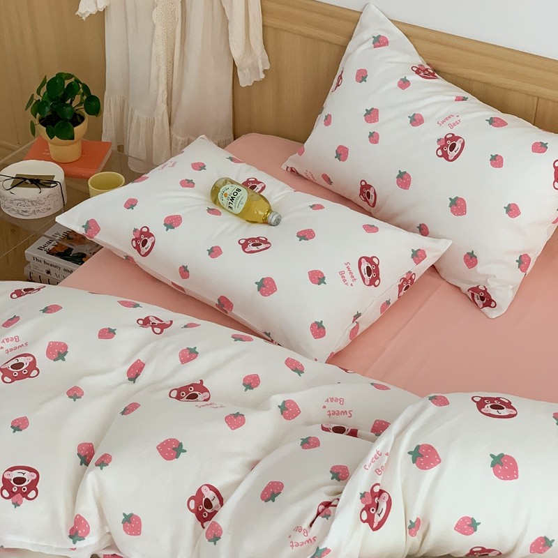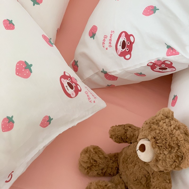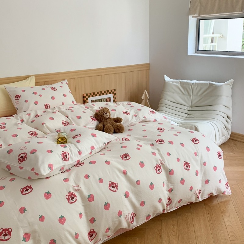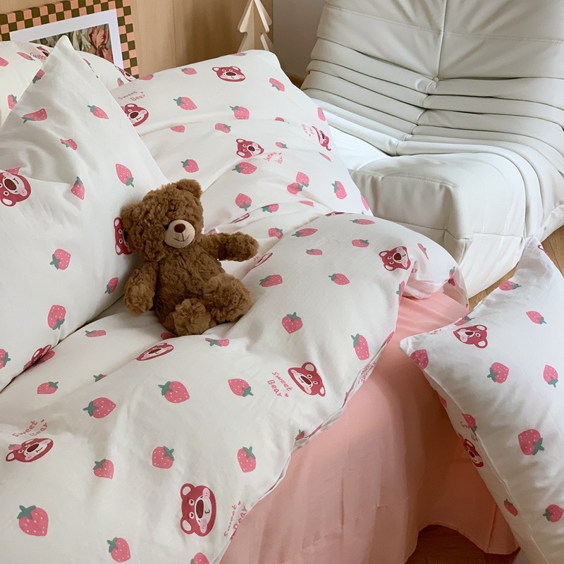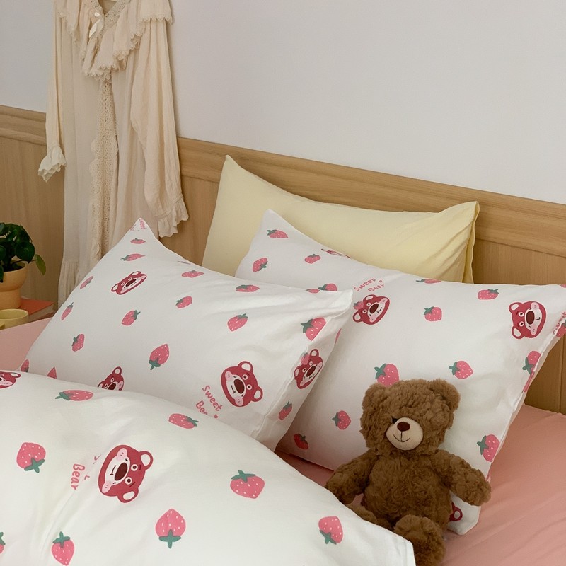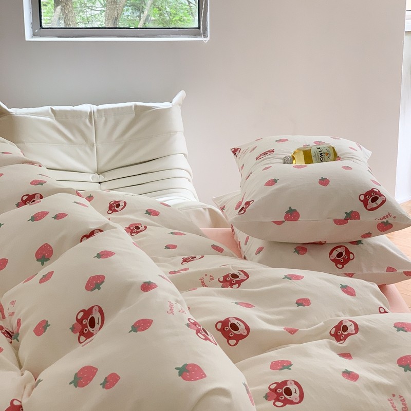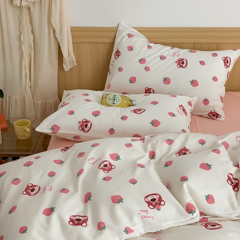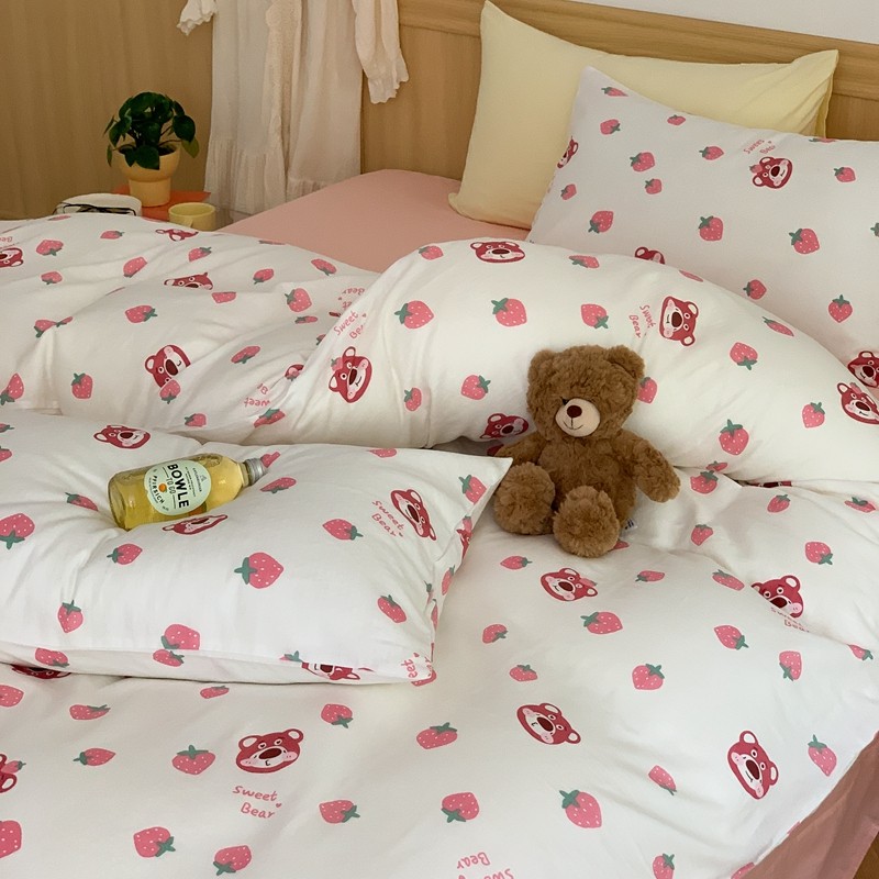 商品名称:金丝鸟 2022新款全棉双层纱四件套 草莓憨憨